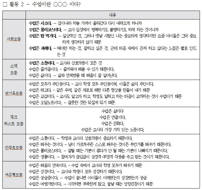 교사가 행복하기 위해 수업이 행복해야 하는 것은 거부할 수 없는 진리 같습니다. 우리의 이야기는 행복한 수업을 위한 다음의 이야기로 넘어갑니다.