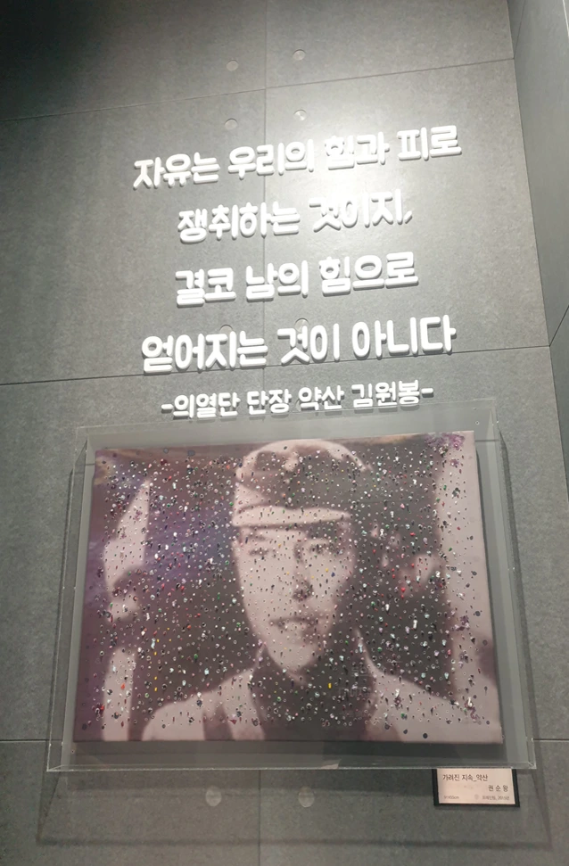 의열기념관은 김원봉 생가터에 지어졌으며 ‘의열’을 주제로 한 전국 최초의 기념관이라고 한다. 그 명성에 걸맞게 김원봉과 의열단 외에도 수십 건의 의열투쟁 활동을 중심으로 전시가 구성되어 있었다. 사실 학교에서 독립운동사를 가르치다 보면 너무 많은 인물과 활동에 묻혀 정작 그들의 신념과 의지는 주목받지 못하는 느낌이 아쉬웠었는데, 기념관에서는 인물 개개인의 정신을 잘 드러내는 문구가 강조되어 있어 인상 깊었다.