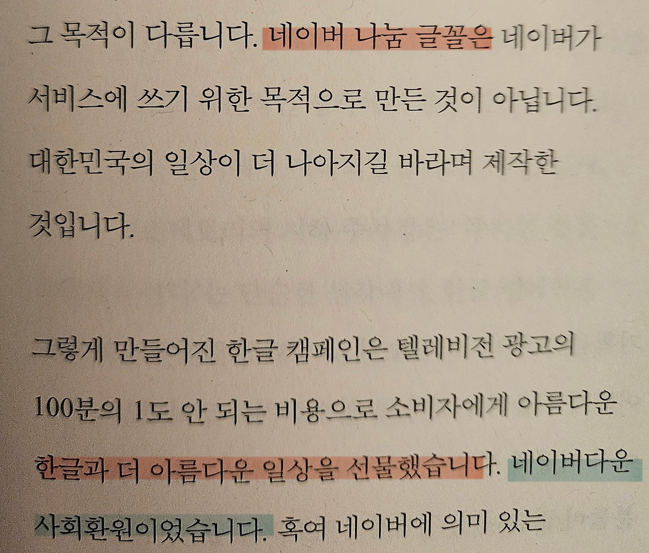 네이버는 '네이버다운 사회 공헌'을 위해서 2008년에 한글 캠페인을 시작하였다.