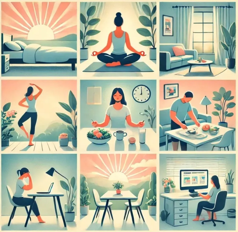 예를 들어 하루에 나는 이러한 루틴을 가지고 있다고 하자. 잠자는 시간 빼고 8시간을 아래와 같이 루틴을 추구하게 된다면 주변으로부터 대단하다, 멋지다 등의 찬사를 받을 수 있을지 언정 금방 지칠 것이고 유지하기도 힘들 것이다. 다시 말해 과도한 루틴은 지양하는 것이 좋다.