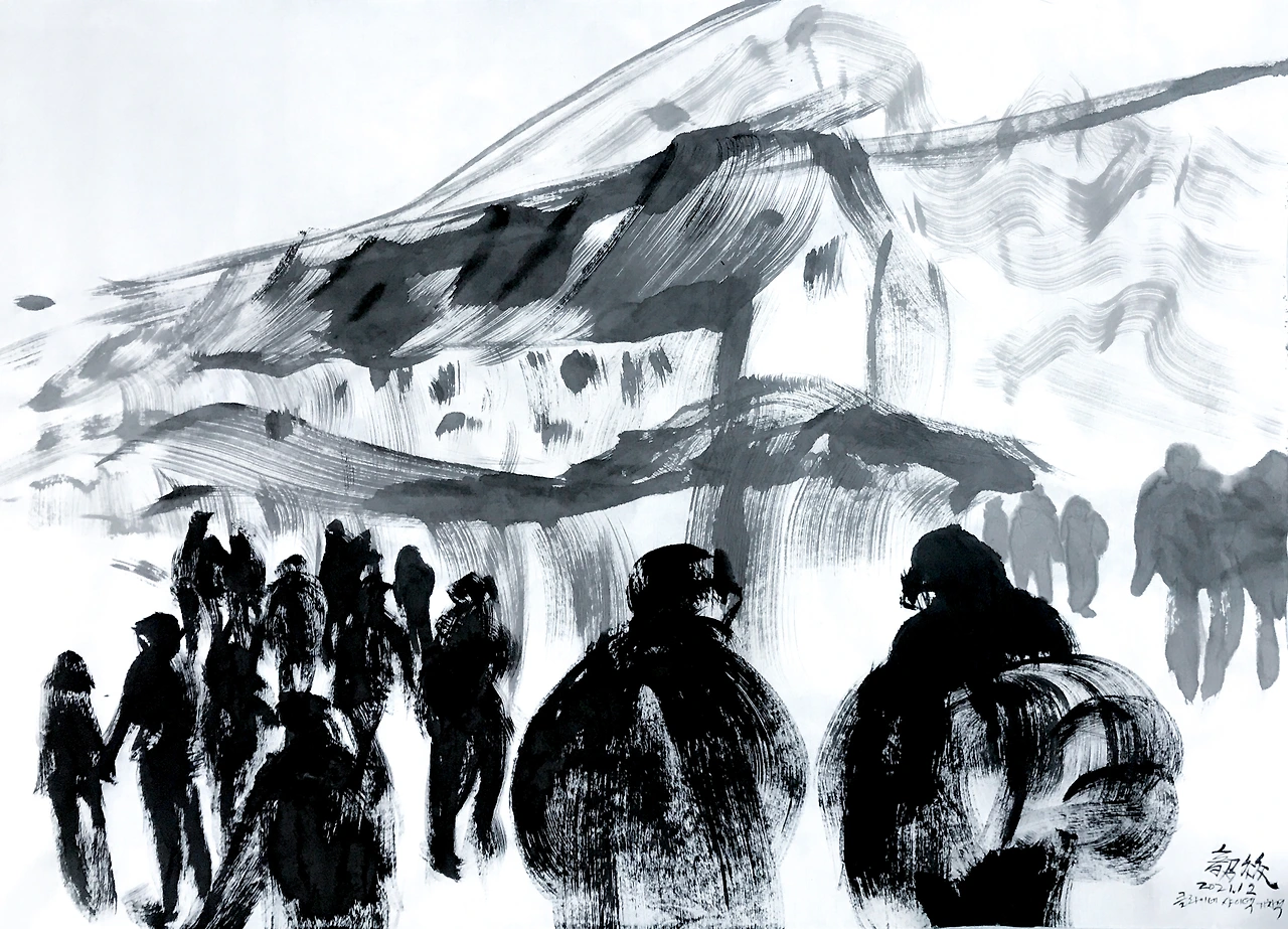 클라이네 샤이덱 기차역 Kleine Scheidegg railway station (2021. ink on korean paper. 92x70)