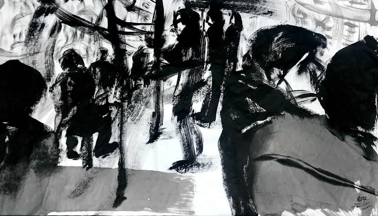상트 페테르부르크의 시내버스 A city bus of st. Petersburg (2022. ink on korean paper. 115x70)