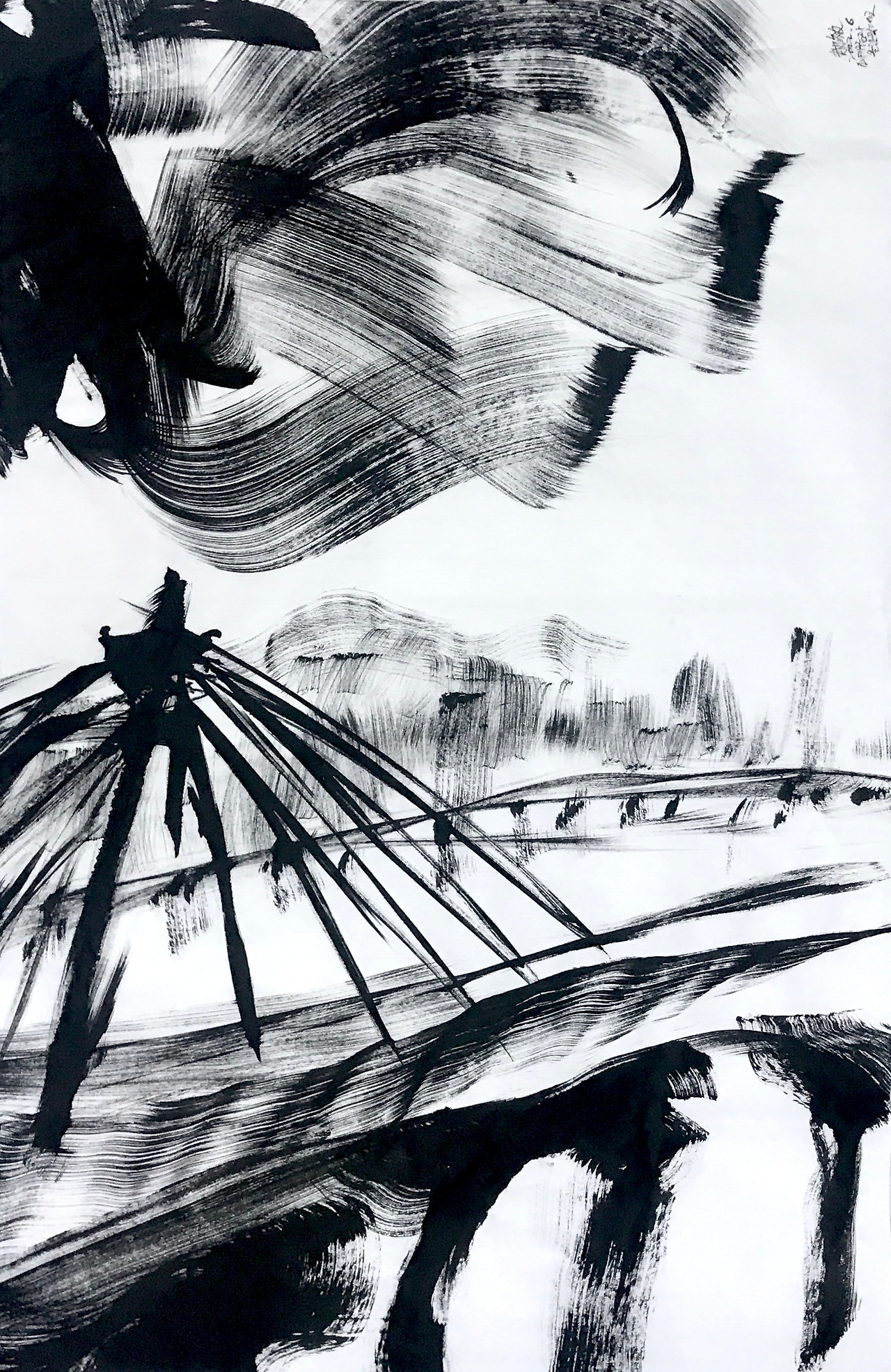 소나기구름과 올림픽 대교 A shower cloud and Olympic Bridge (2022. ink on korean paper. 58x85)