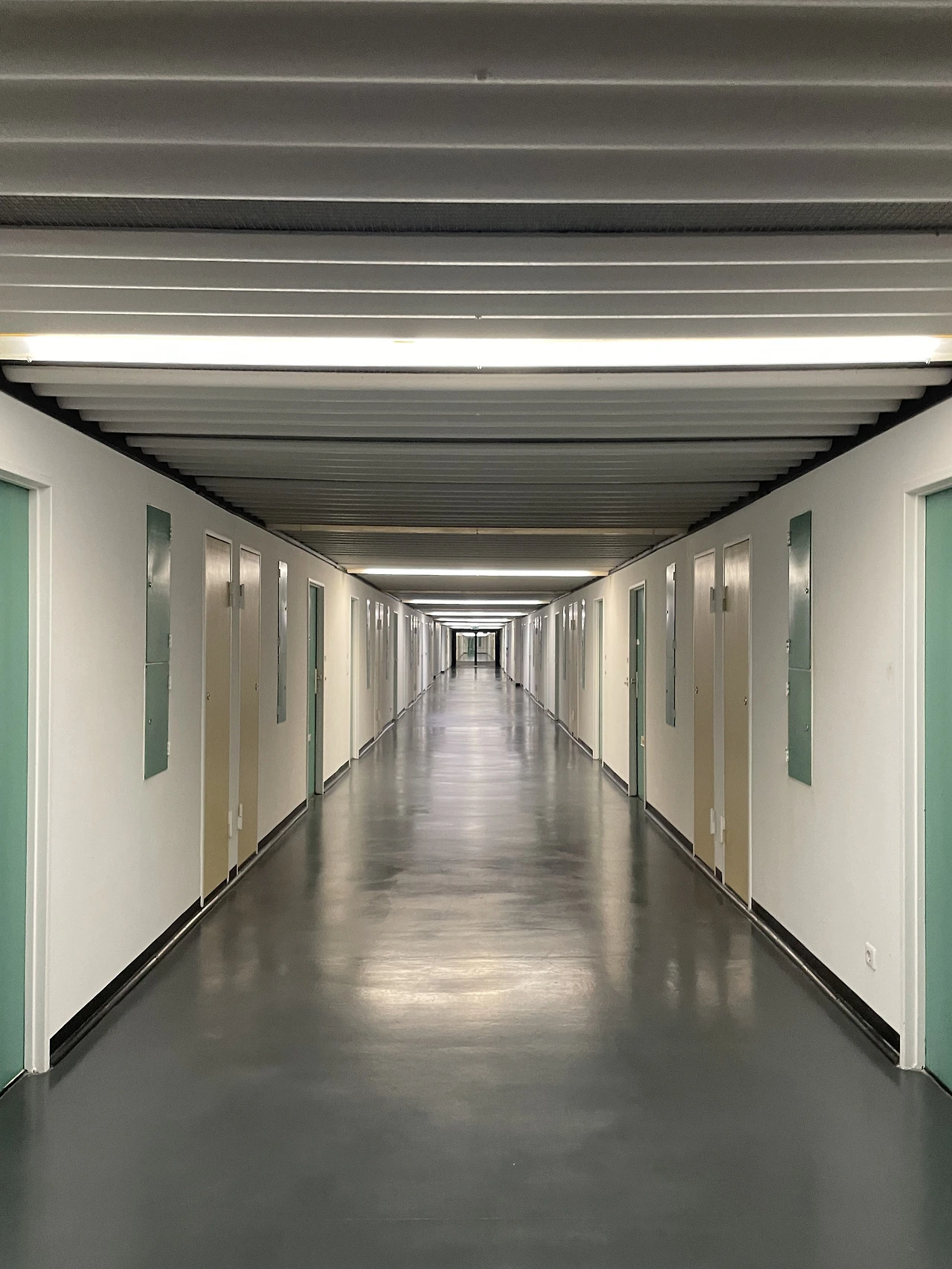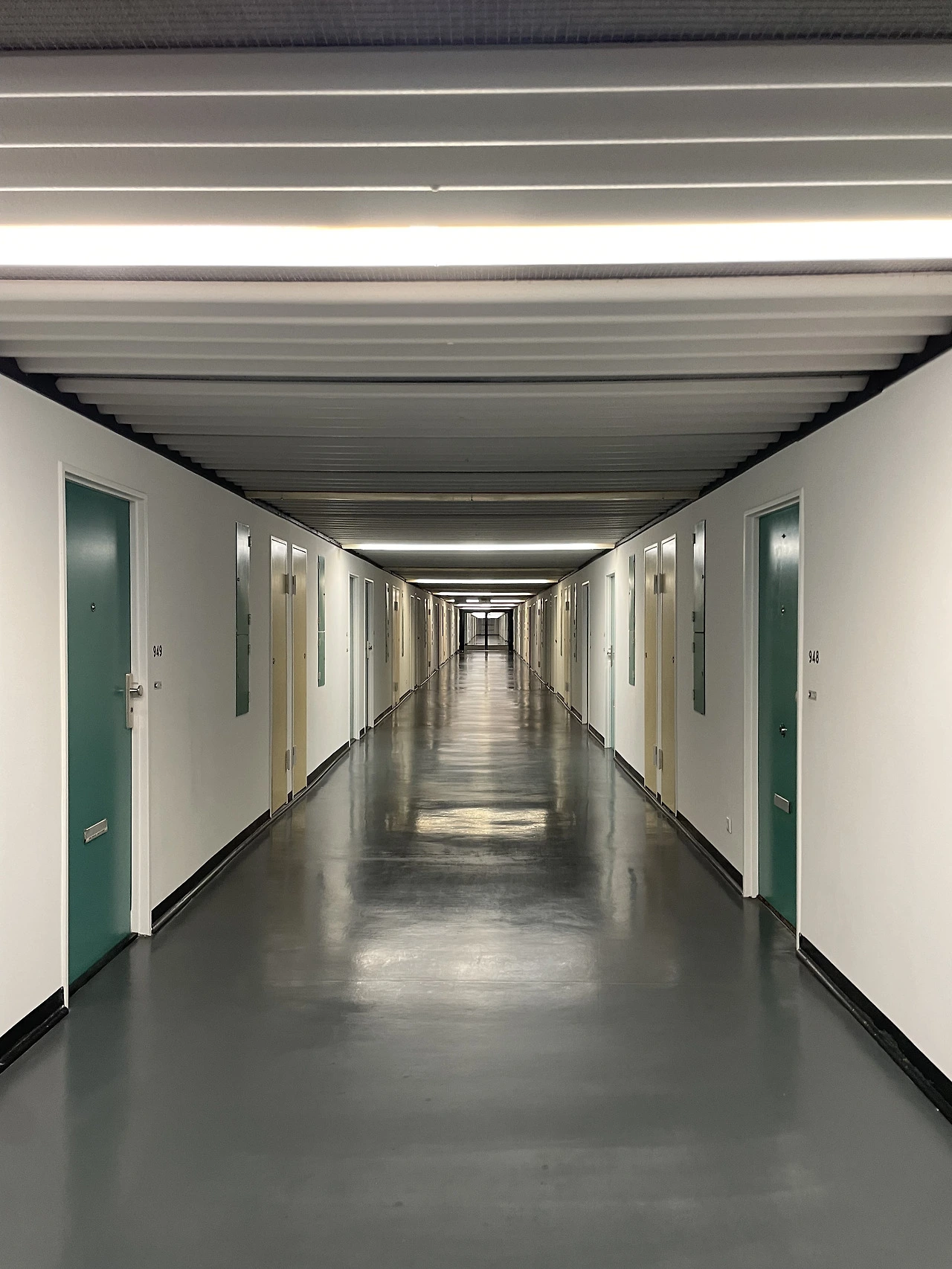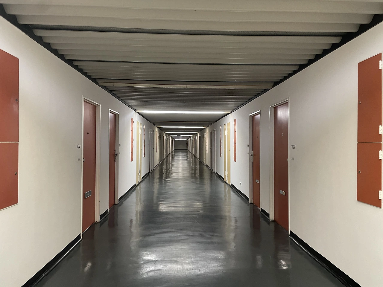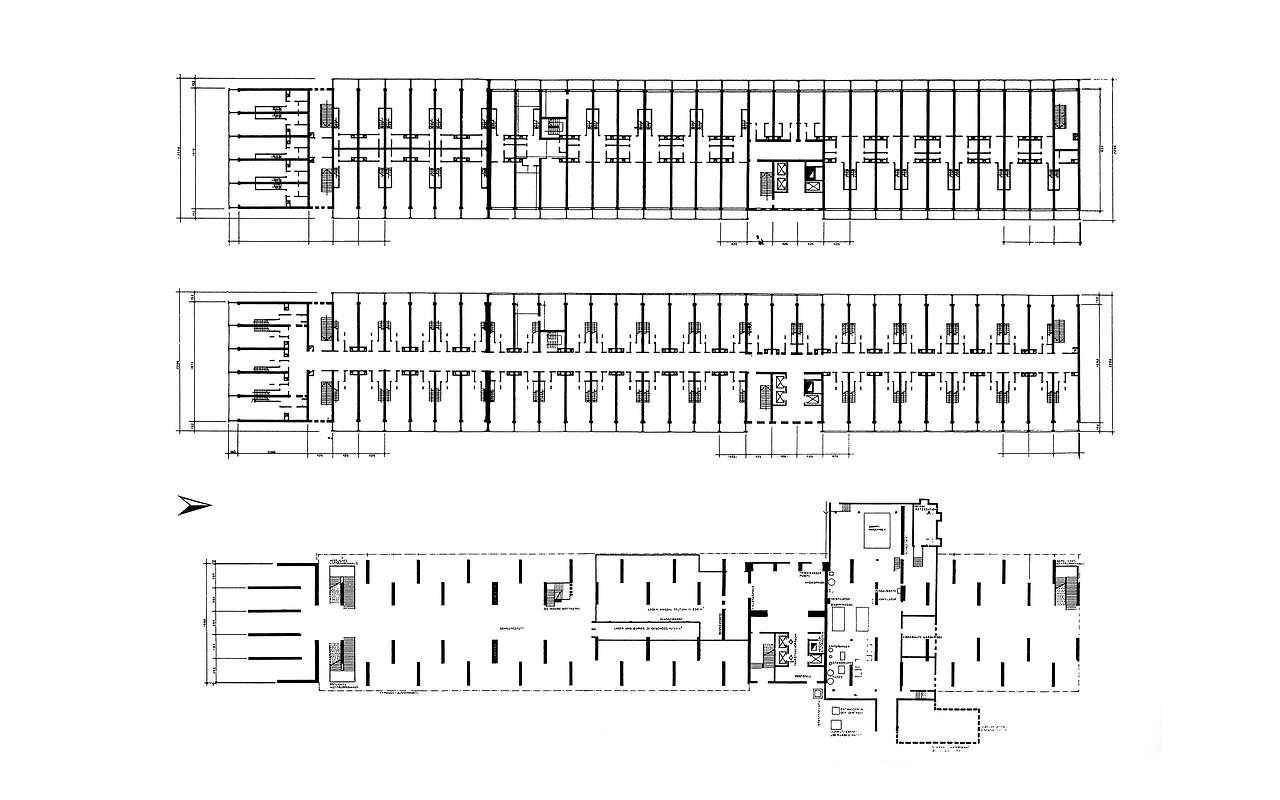 피흐미니의 유니테 다비타시옹과 연결하여 베를린 유니테 다비타시옹으로 넘어온다. 피흐미니에 비해 입면에 색채감이 더 화려하고 지상층의 세탁실과 작업실 등 다양한 문화시설들이 추가로 건설된 듯하다. 피흐미니와 다르게 난간은 석재로 이루어져 있었다. 입면의 수직 루버들은 내부의 리테일 층을 나타낸다. 공용부에 리듬감 있는 빛이 어떻게 들어올지 궁금하다.