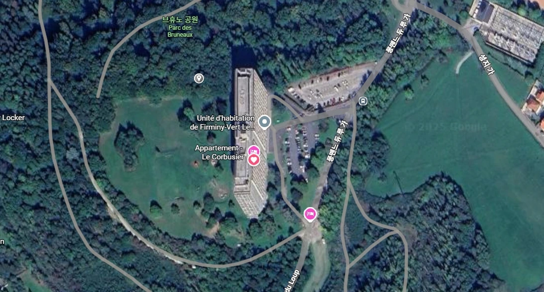 이번에 방문한 유니테 다비타시옹은 프랑스 피흐미니 브휴노 공원 언덕에 위치한 건물이다. 코르뷔에게 처음 맡겨진 고층 집합주거인 유니테는 코르뷔가 60세 전후에 설계한 건물이다. 코르뷔는 설계 당시 다복합적인 문화시설과 주거가 결합된 집합주거를 상상했다.