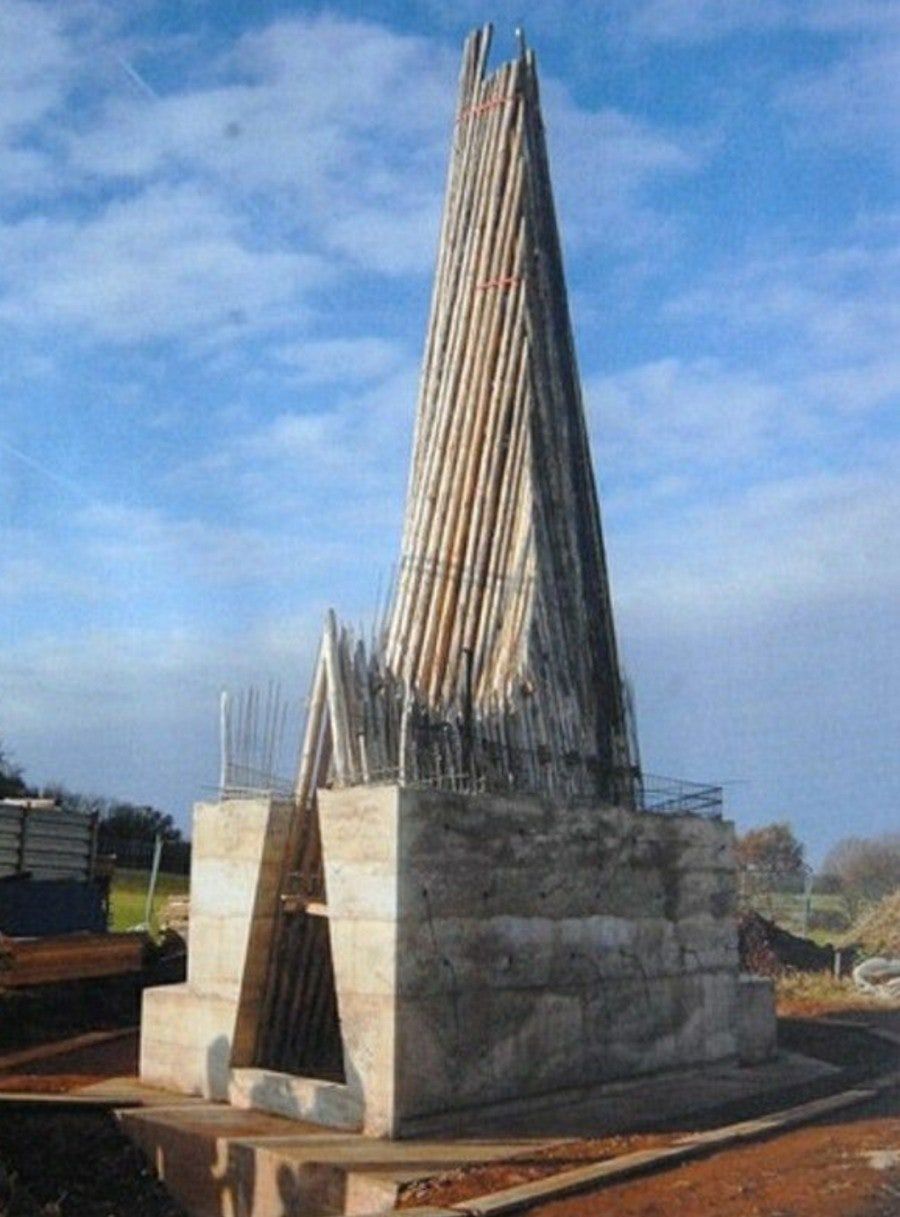 그 외곽으로 콘크리트를 부으니 콘크리트는 솟아오른 구조체를 비비며 층층이 쌓여간다. 진흙이 섞인 콘크리트는 마치 밭이 수직으로 쌓여가는 기분이다. 하루 500mm씩 24일을 한 층 씩 쌓아 올라갔다.