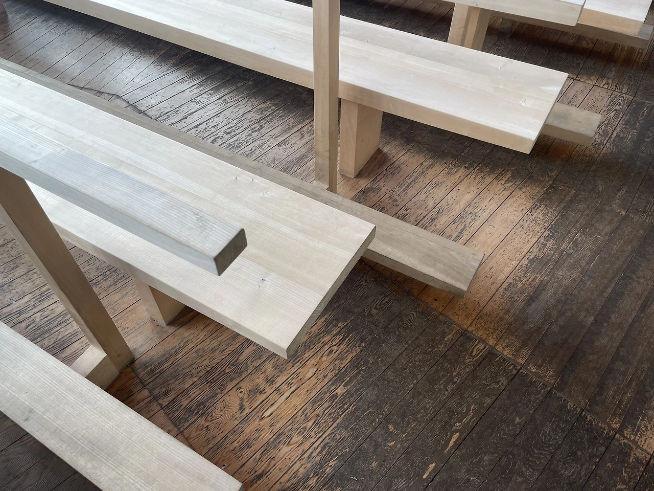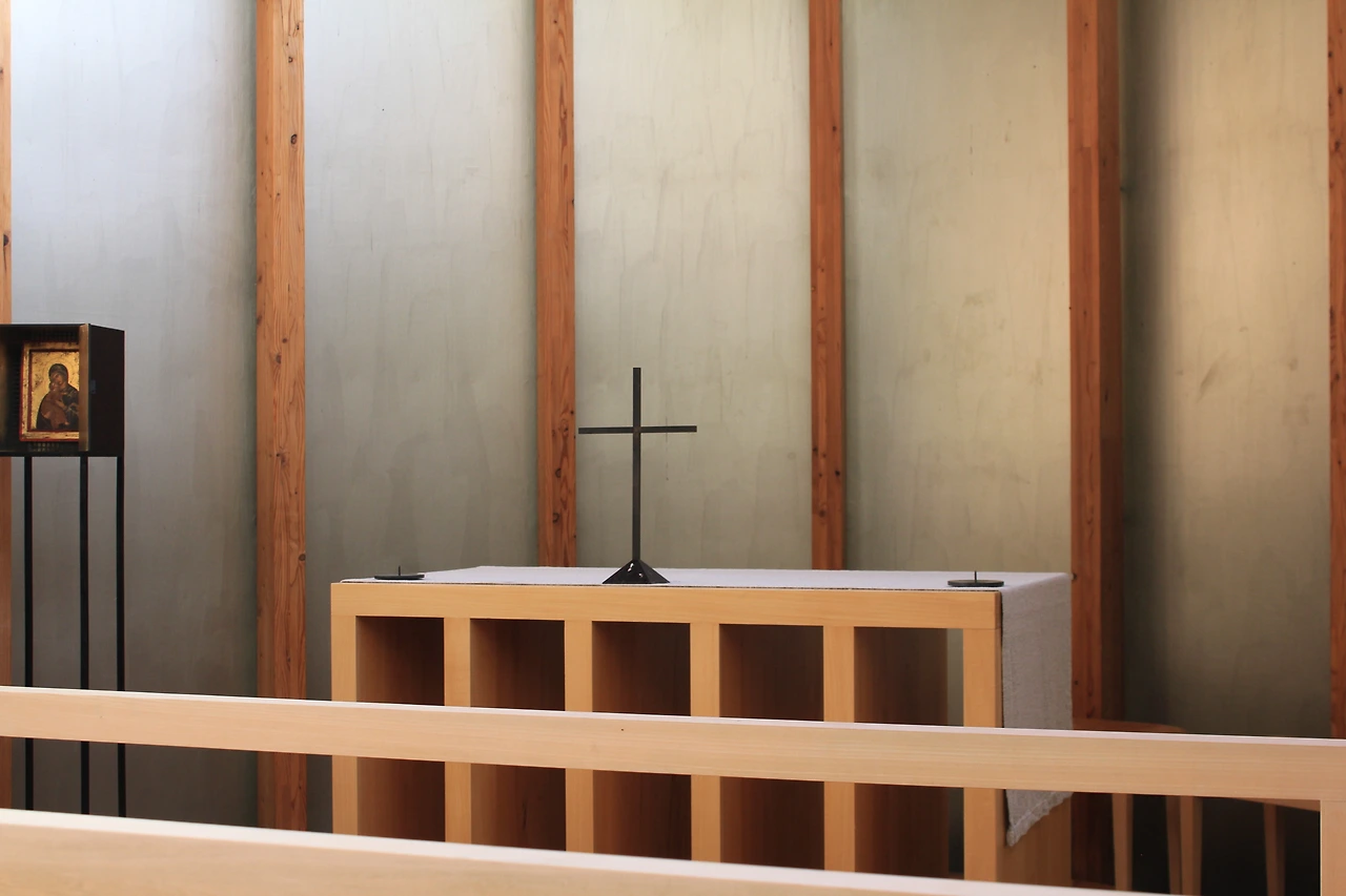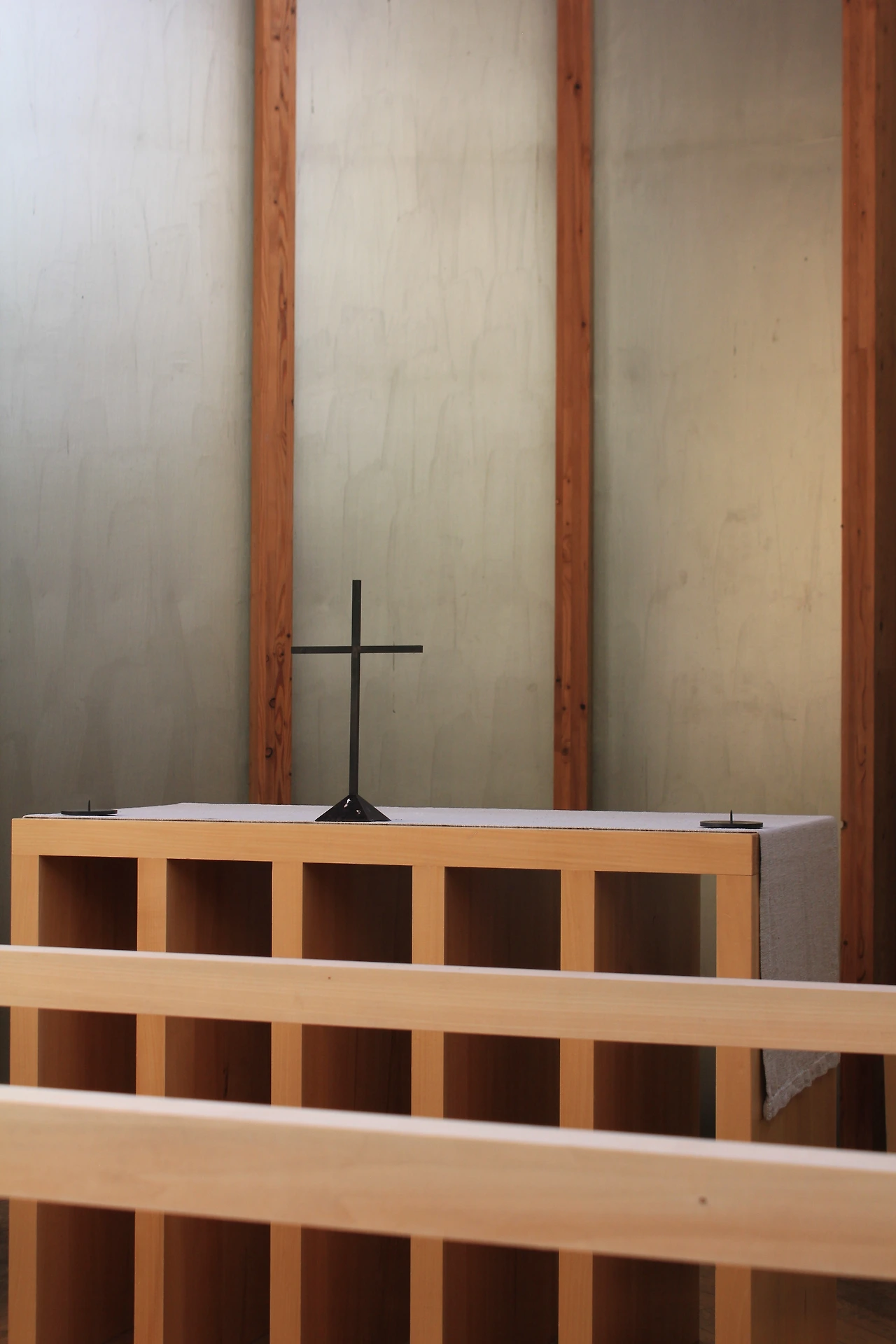 나무 프레임과 촛불 조명들은 합판벽에 그림을 그려낸다. 해가 뜨고 지는 과정은 성당 내부에서 볼 만할 것이다.