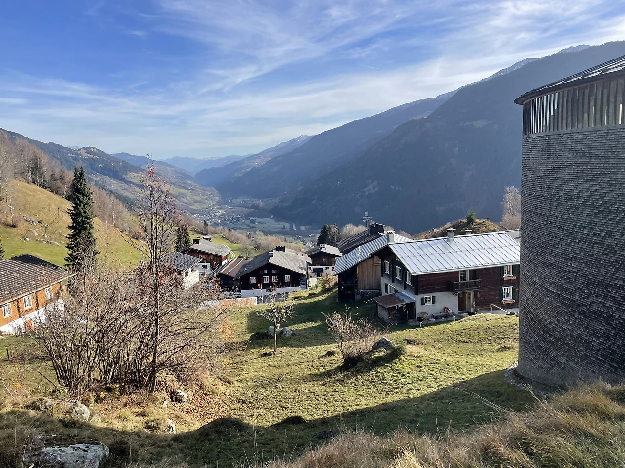끝이 없는 산골짜기를 달리다 보면 언덕에 몇 가지 집을 걸터앉아 있는 마을에 도착한다. 어느 순간부터 차를 끌고 가기 어려운 길에 도달하면 잔디 사이에 난 길을 따라 걸어가게 된다. 발걸음을 따라 걸어가다 보니 어느새 경사가 급해져 걸음이 늦어지는 구간에 도달하게 된다. 그때 자연스레 고개를 들면 저 멀리 빛에 의해 빛나는 산 위의 배, 성 베네딕트 성당에 도착하게 된다. 어느 정도를 올라오게 된 나는 온 길을 되짚어 돌아보니 산 골짜기 계곡마을을 품고 있는 장관이 눈앞에 펼쳐졌다.