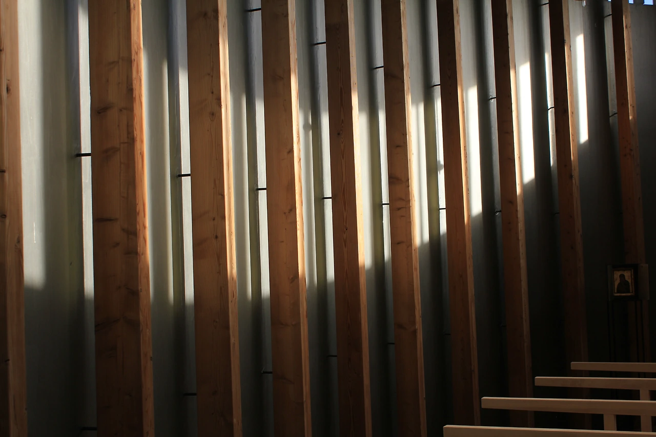 조금씩 코를 찌르는 목재 냄새와 눈을 평화롭게 하는 색감, 건물을 하나의 오브제로 봤던 피터의 성당은 건물을 이루는 요소 하나하나가 모여 완전한 하나를 이룬다. 줌터의 건물을 이루는 요소들은 전부 살아 숨 쉬는 듯한 생동감이 있다.