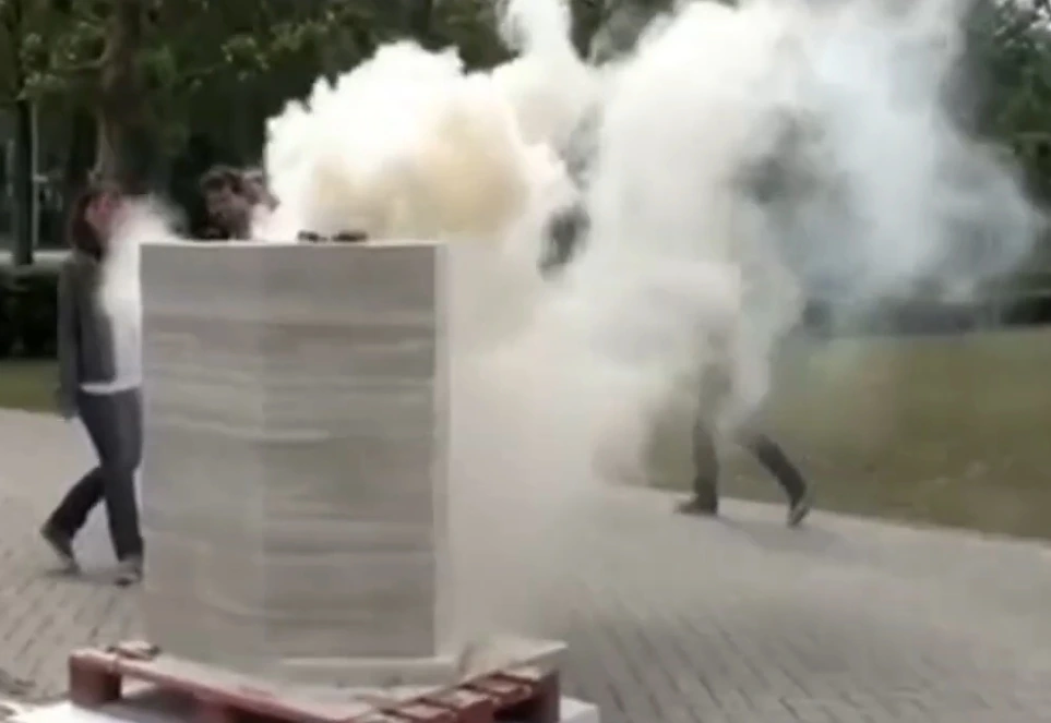 여러 결의 무늬를 쌓아간 콘크리는 24일 후 콘크리트를 지탱한 거푸집에 불을 붙였다.