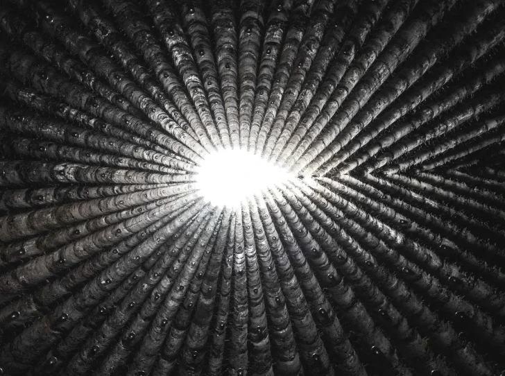 마을 농부들은 직접 채플 공사에 나섰다. 112개의 소나무 줄기들을 엮어 쌓아 올려 구조체를 만들었다.