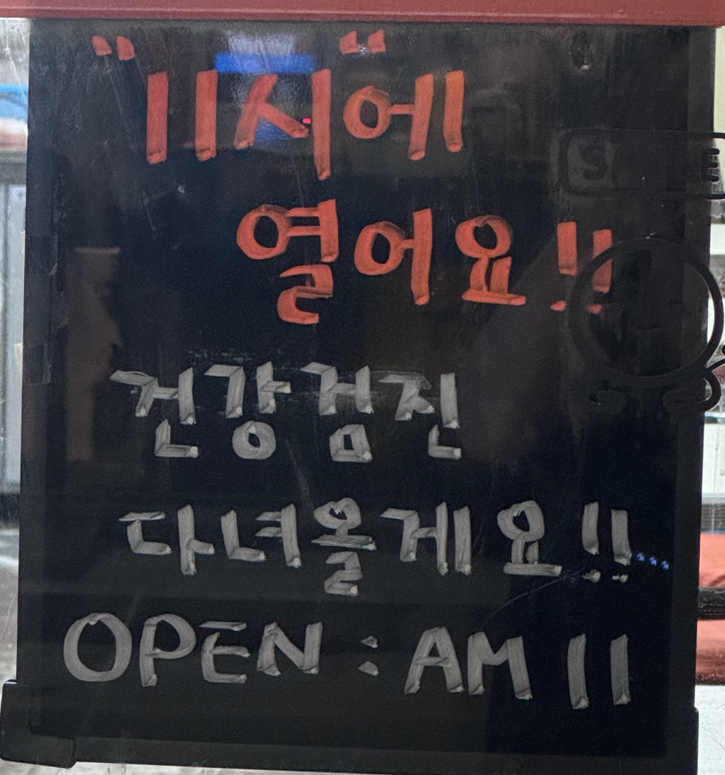 오늘은 우리 가족 건강검진 날이었다. 그래서 가게는 11시에 오픈한다는 안내문을 걸어놓고 늦게 열었다. 아침 7시 30분, 병원에 가서 국가건강검진을 받았다. 나라에서 해주는 검진이라 항목이 많지는 않았지만 위내시경이 있어서 시간이 조금 오래 걸렸다.