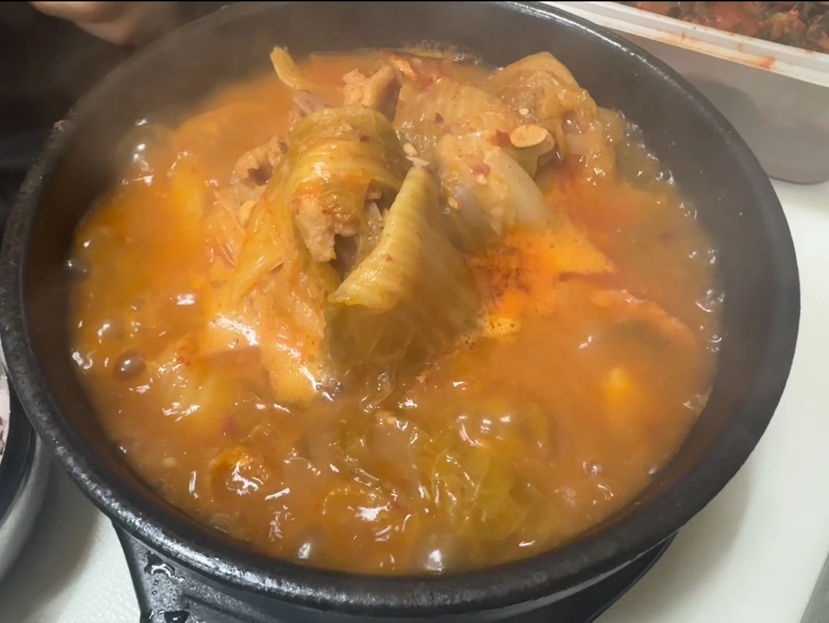 엄마는 할아버지 댁에 갈 때 종종 감자탕을 끓여간다. 우리 가족 모두 엄마의 감자탕을 참 좋아한다. 그러나 손이 많이 가고 끓이는 게 힘든 걸 알아서 자주 해달라고는 못한다. 그러니까 할아버지 댁에 갈 때 감자탕을 끓이는 날은 나름 특식을 먹는 날로 아주 행복한 날이다. 우리 가족의 행복한 음식이 할머니에게도 행복한 음식이 되어 가고 있지 않을까? 서로의 정을 나눌 수 있는 따뜻한 감자탕 한 그릇이다.