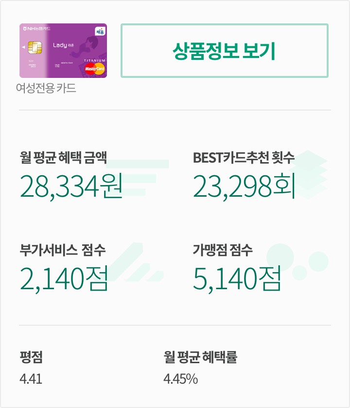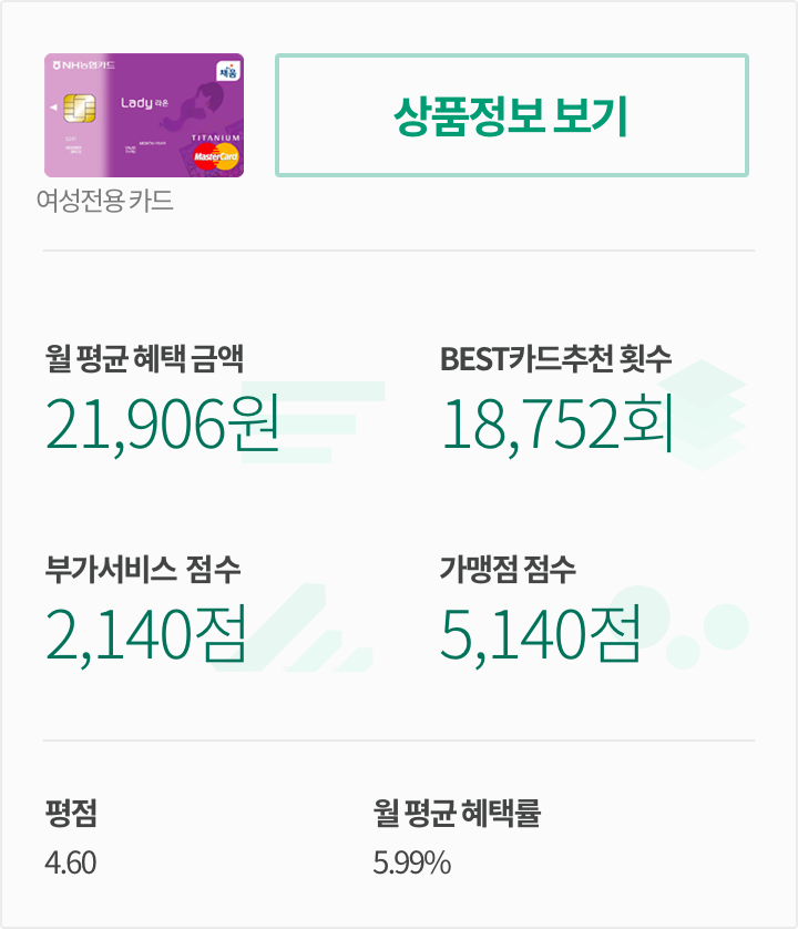 *)안타깝게도 레이디라온 카드는 여성 전용 카드로 여성분들만 이용이 가능한 카드입니다. 남성 분들은 다음 카드에 주목해주세요!