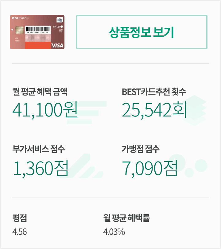 *) 농협 시럽 카드는 안타깝게도 지난 2016년 말 신규 발급이 중단되었습니다. 발급 중단이 아쉬우시다면, IBK 시럽 카드를 참고하세요!