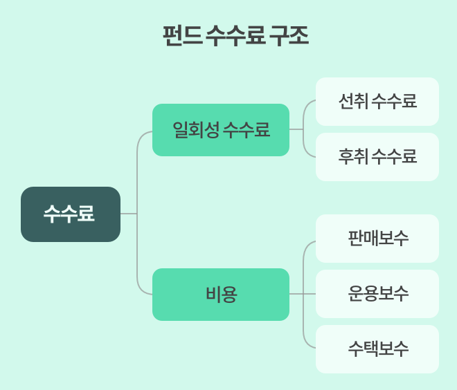 선취·후취 수수료는 불입한 원금에 대해 1회성으로 부과되는 수수료로 선취수수료의 경우 펀드 가입 당시, 후취는 연금 수령 당시 부과됩니다. 비용은 순자산가치에서 매일 일일 정산해두었다가 일정한 단위(일반적으로 3개월 단위)로 해당 펀드금액에서 차감되며, 운용기간 동안 계속 부과됩니다. 또한 비용은 은행, 증권사 등 판매사에서 가져가는 판매보수, 자산운용사에서 가져가는 운용보수, 은행에서 가져가는 수탁보수로 나뉩니다.