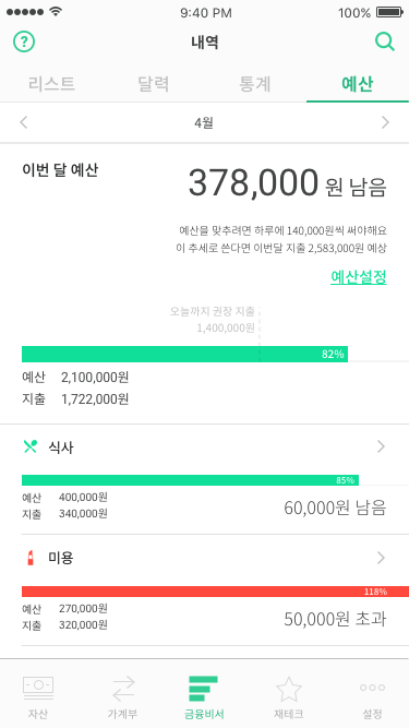 우리는 가계부 유저의 멘탈리티는 '가계부 = 월 지출 통제 = 예산 설정'이라는 결론을 내렸습니다.