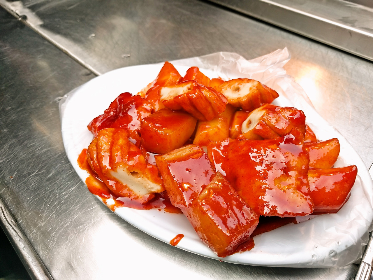 두 명씩 짝을 지어 국밥 한 그릇씩 깨끗하게 비운 후 마주하게 된 떡볶이와 물떡