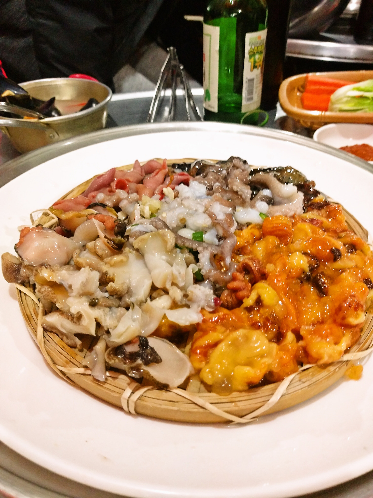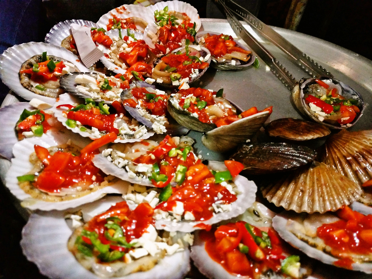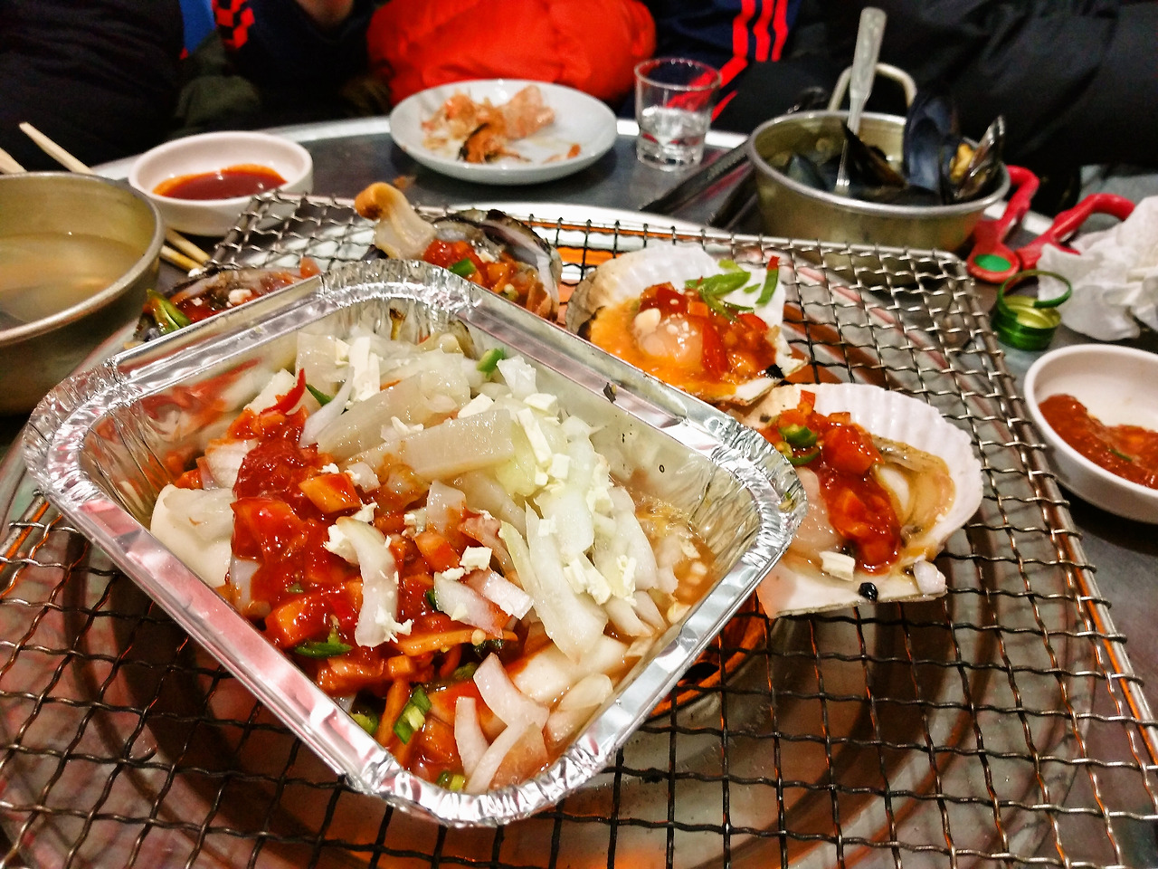 손바닥 크기만 한 조개구이와 신선한 해산물을 안주삼아