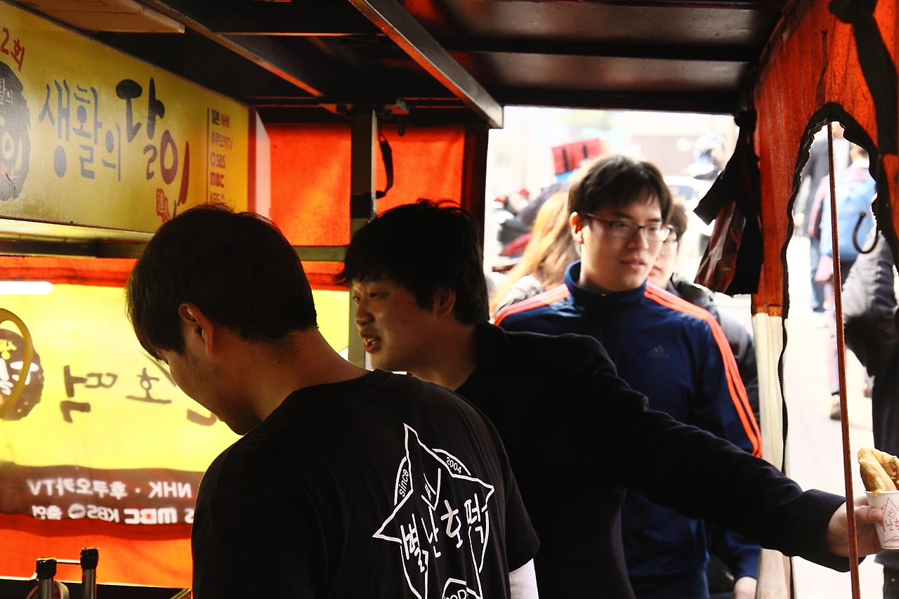 감동적인 씨앗호떡을 하나씩 들고 첫 번째 코스인 순대국밥집으로 향했다.