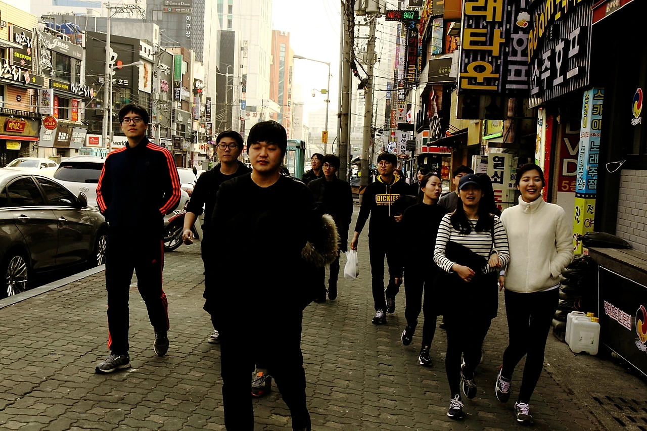 다음 코스를 찾아 우리는 부산의 시장과 거리를 구경하며 이동했다.