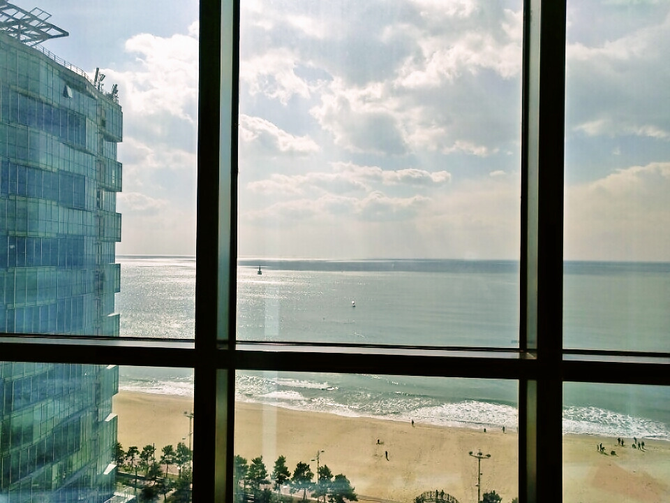 오후의 따스한 햇살과는 달리 갑자기 거세진 부산의 바닷바람을 뚫고 우리는 실로 어마어마하다는 초밥 뷔페집으로 향했다. 사진이 정말 그 바람을 제대로 보여준다.