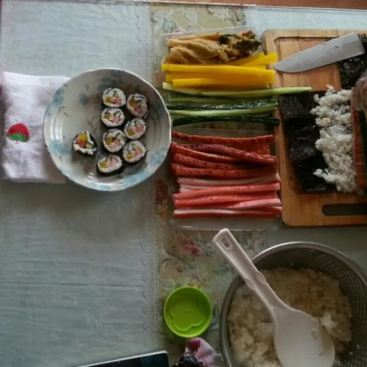 김연아가 아사다마오와 겨룰땐 김연아를 응원하기 위한 준비로 즉석 김밥을 쌌다.
