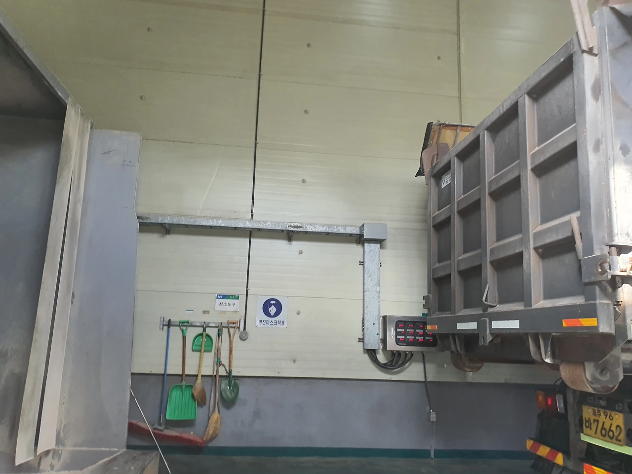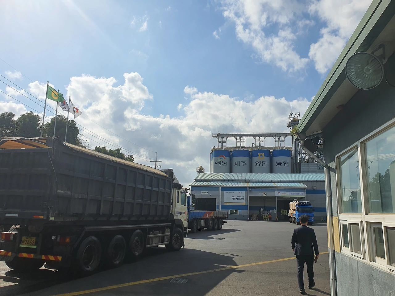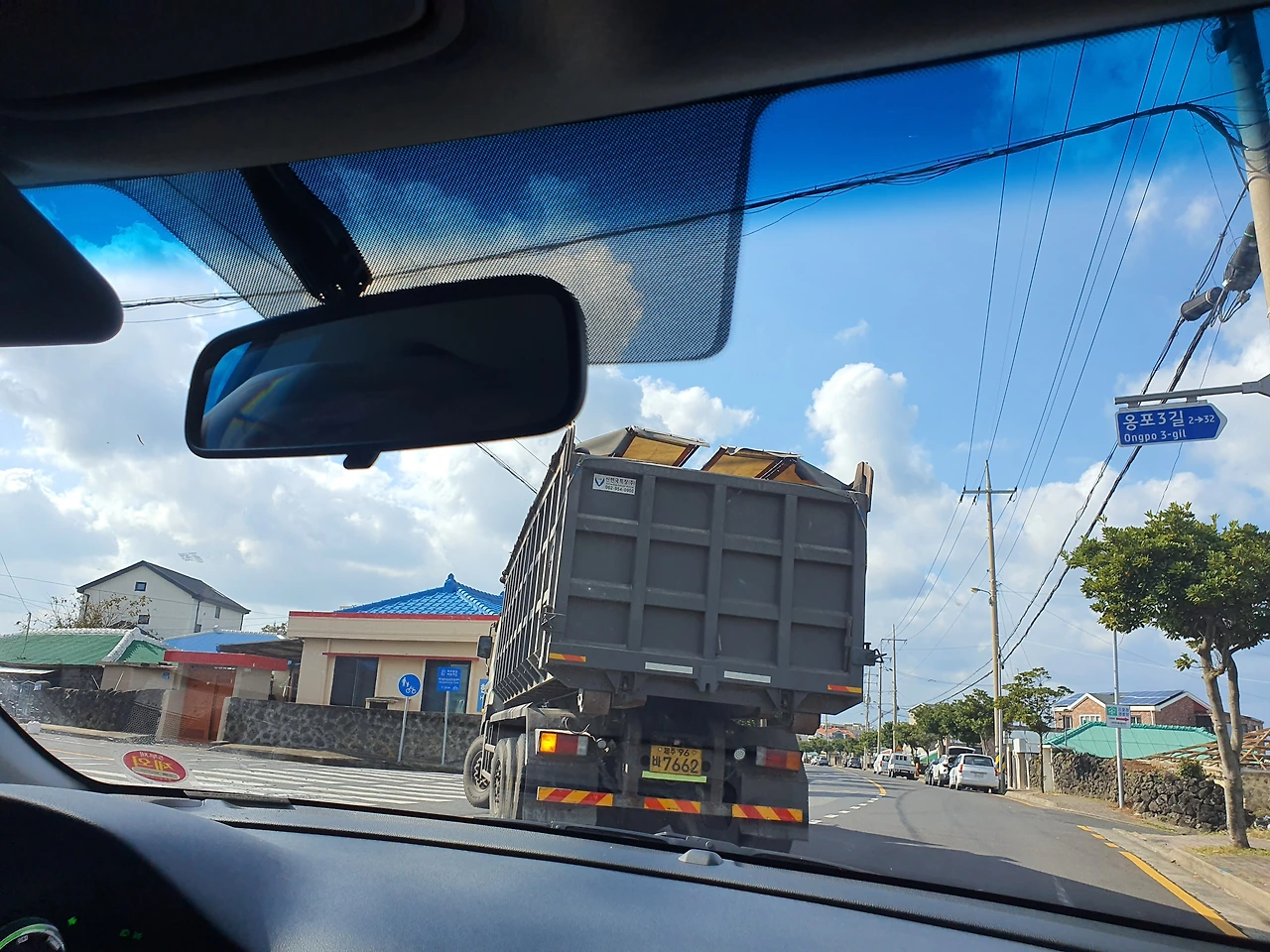 저렇게 커브길을 돌때 조심해야 한다제주 양동농협에 도착한 덤프트럭