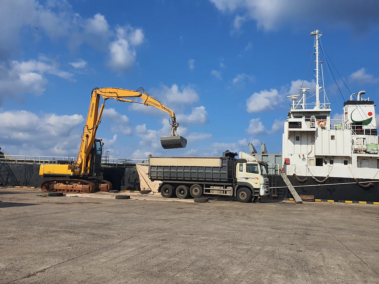 지금 덤프트럭에 옥수수를 퍼 올리고 있는 장면이다.