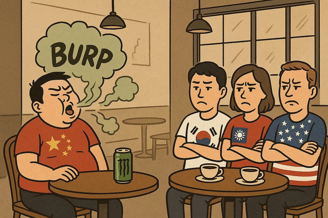 굴기를 통해 대국(大國)의 자긍심을 되찾은 중국은 대만을 비롯한 주변국에 대해 폭력적 언행을 서슴지 않는 '전랑(戰狼)외교'를 전개하고 있다. 2023년 6월, 당시 주한 중국 대사였던 싱하이밍(邢海明)은 이재명 당시 더불어민주당 대표와 만나 "미국의 승리와 중국의 패배에 베팅한다면 반드시 후회할 것"이라며 협박에 가까운 훈계를 했다. 재임중 그가 했던 다른 발언들을 살펴봐도 주권국가에 대한 존중은 찾아볼 수 없다. 애초에 대한민국을 주권국가로 보고 있는지도 의심스럽다.
