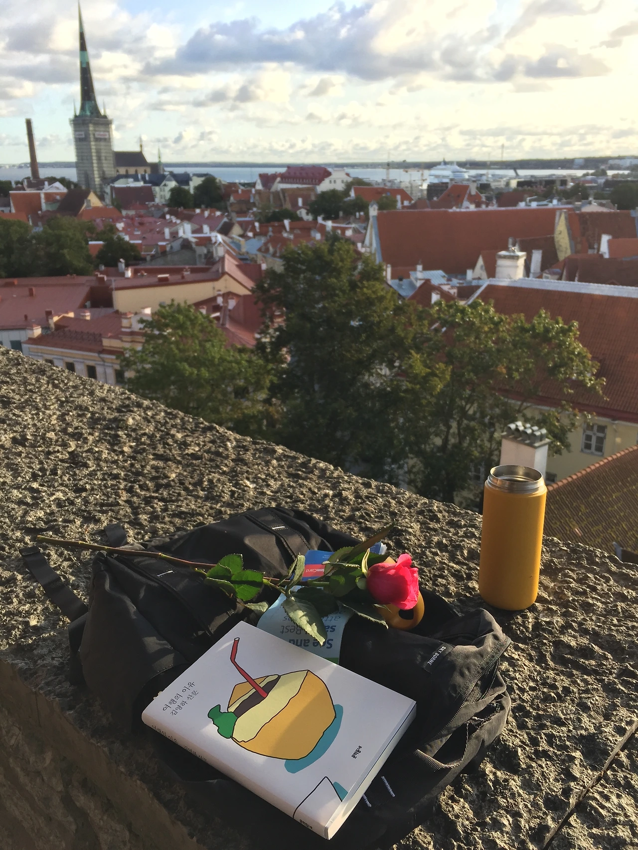 유네스코에 등재되었을 정도로 중세시대 모습을 잘 유지하고 있는 에스토니아 수도 탈린의 올드타운은 매일 걸어도 질리지 않았습니다. 잘 정리된 돌길과 눈길을 끄는 붉은색 지붕, 알록달록한 건물을 배경으로 늘 사람이 북적이던 중심 광장, 중세시대 의상을 입고 서빙을 하던 식당 직원들. 아름답고 신기한 풍경이 많은 곳이지만 그중에서 한 곳을 꼽는다면 조용히 아침을 맞이할 수 있는 코투오차 전망대가 제일 먼저 떠오릅니다. 아침 7시의 전망대는 조용하다 못해 바람에 날리는 낙엽이 을씨년스럽게 느껴지기까지 했죠. 전망대 돌담에 앉아 빨간 지붕과 저 멀리 보이는 바다를 바라보며 텀블러에 담아 온 따듯한 허브티를 홀짝거리기도 하고, 책을 읽기도 했습니다.