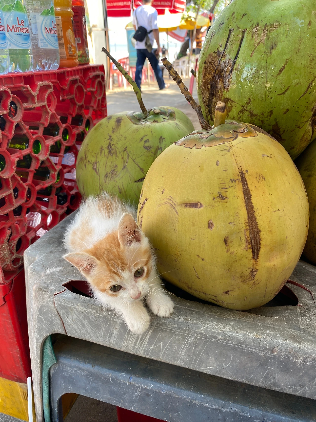 초보가 서핑을 배우기 좋다는 꾸따와 짱구 중에서도 모래바닥인 꾸따가 다칠 위험이 적다. 그리하여 꾸따 비치를 걸을 때에는 '서핑?' 하는 질문을 20번 이상 받을 각오를 해야 한다. 그만큼 로드샵이 빼곡히 들어서있다. 서핑에 흥미가 있던 것은 아니지만 그래도 여기까지 왔으니 발 한 번은 담가보는 것이 좋지 않을까 싶어 길을 걷다 편안하게 말을 걸어 준 중개인과 약속을 잡고 숙소로 돌아왔다. 사실은 거기에서 폴짝폴짝 뛰어다니던, 그 귀여움에 심장까지 떨리던 아깽이 Mary 때문에 그곳을 택했다.