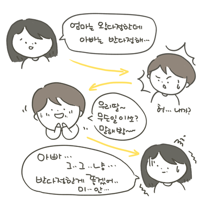 "엄마는 왕다정한데, 아빠는 반다정해 ㅎㅎㅎ"