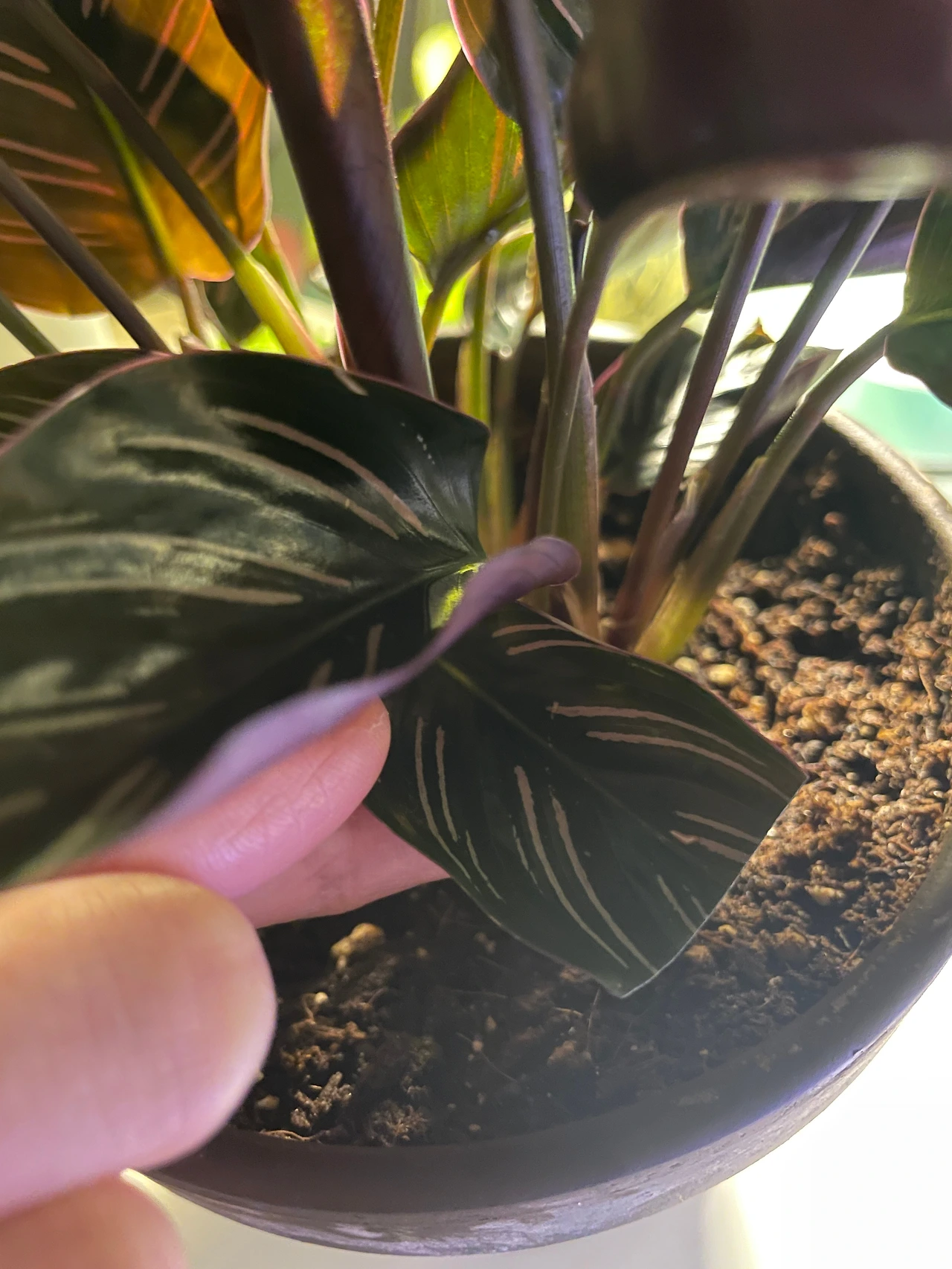 물 주기 : 겉흙이 마를 때, 잎이 말려 있을 때 (우리 집 환경에 맞춘 물 주기는 주 1~2회, 약 4일 간격)