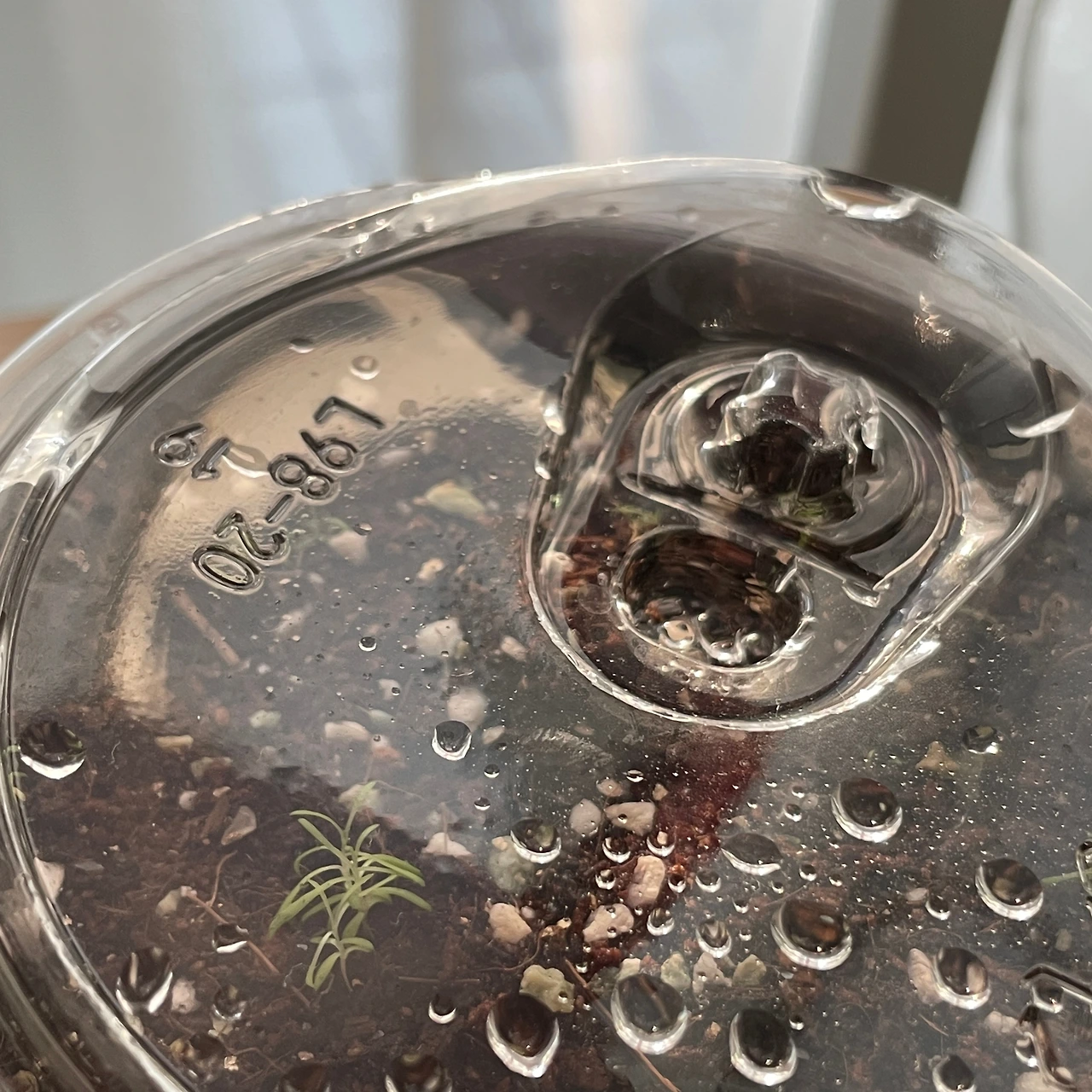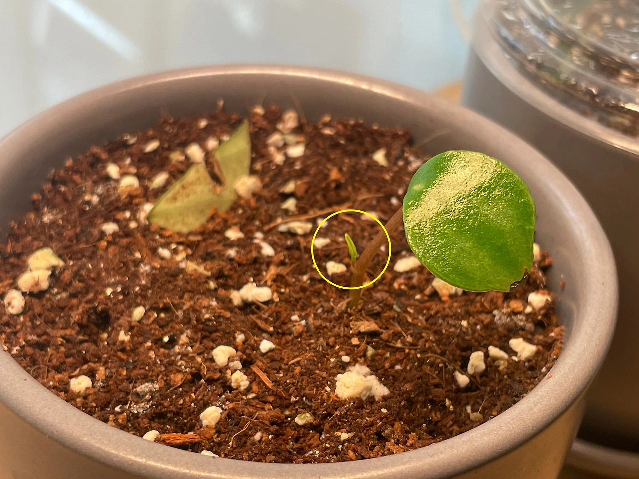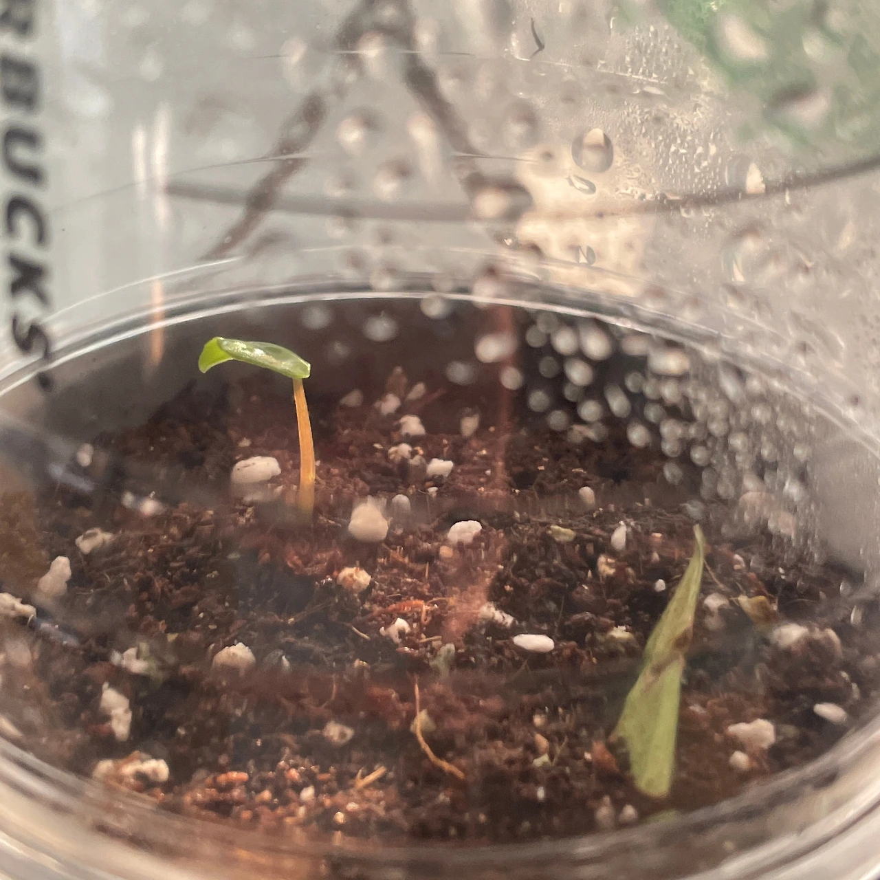 뿌리가 완전히 자리 잡기 전까지는 습한 환경에서 키워주는 게 좋다고 하길래, 생각날 때마다 잔뜩 분무해주고 플라스틱 커피잔을 덮어줘서 습도를 유지해주었다. 그로부터 약 한 달 후 녀석이 아주 긍정적인 신호를 보내왔다.