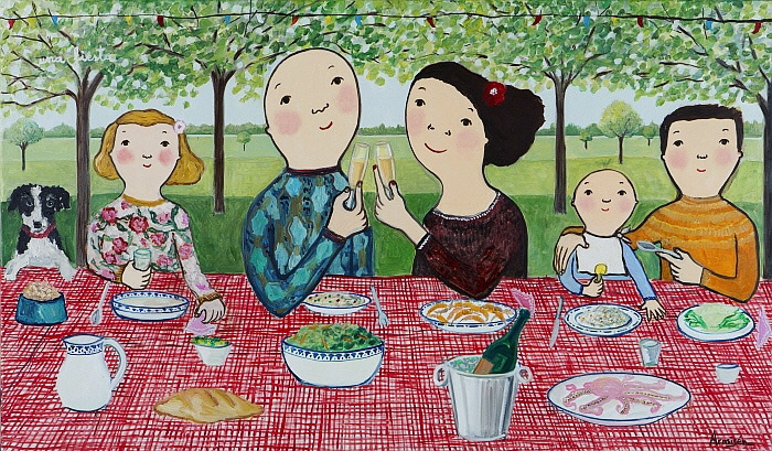 몇 해 전, 한 설문(잡코리아*알바몬) 결과에 따르면 가족과 저녁식사를 하는 횟수가 일주일에 평균 2.7회라고 한다. 성인남녀의 57%는 가족과 저녁식사를 자주 못한다고 응답했다. 이 설문 결과에 나도 포함된다. 그래서일까, 에바 알머슨의 ‘저녁식사’라는 작품에서 가족들과 함께 식사를 하는 이 일상적인 장면이 갖는 의미를 다시 한번 되새기게 된다.