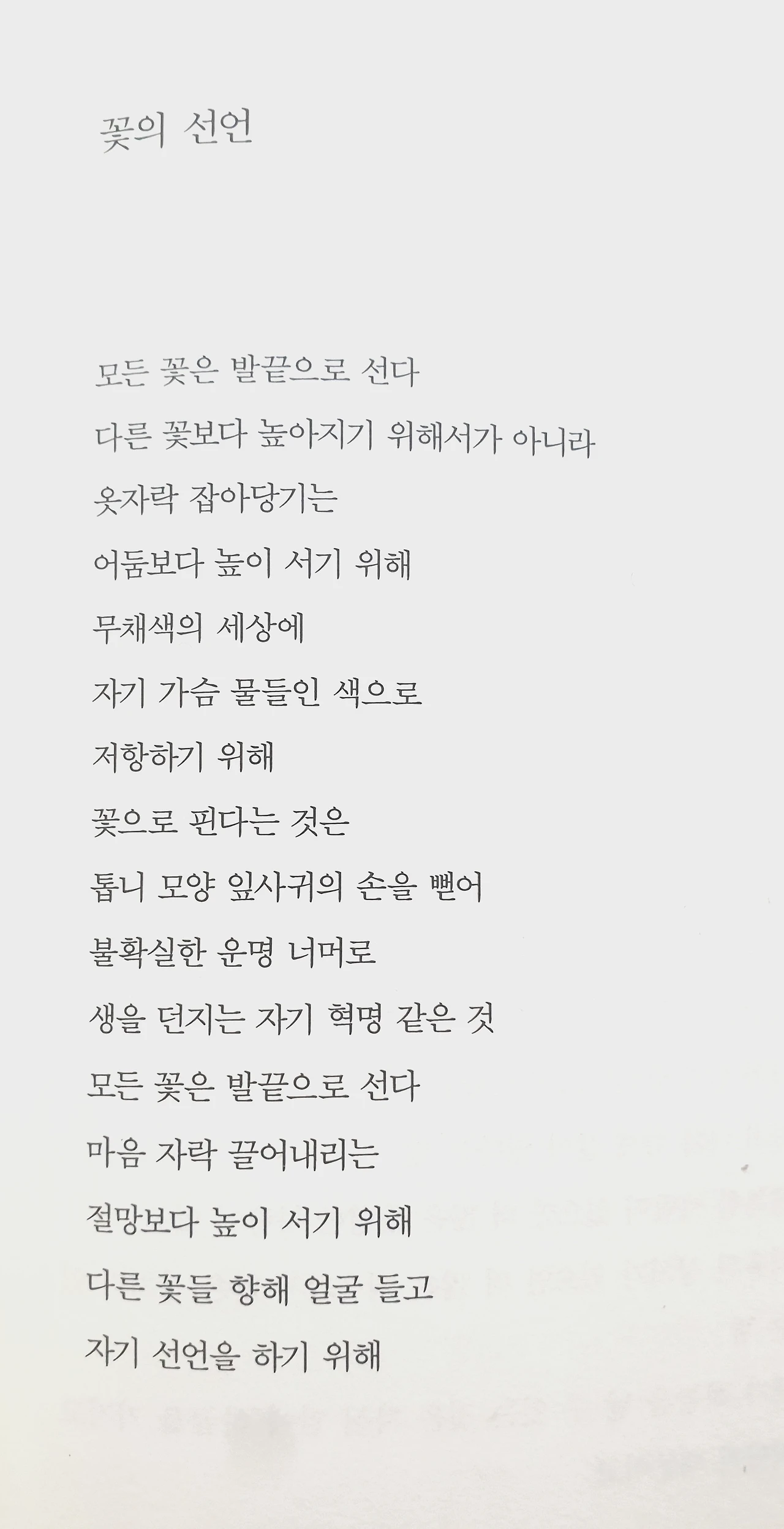 꽃의 선언 앞에서 나다운 선언이라도 한 것처럼. 교단에 올라 선서를 하는 학년 대표처럼.