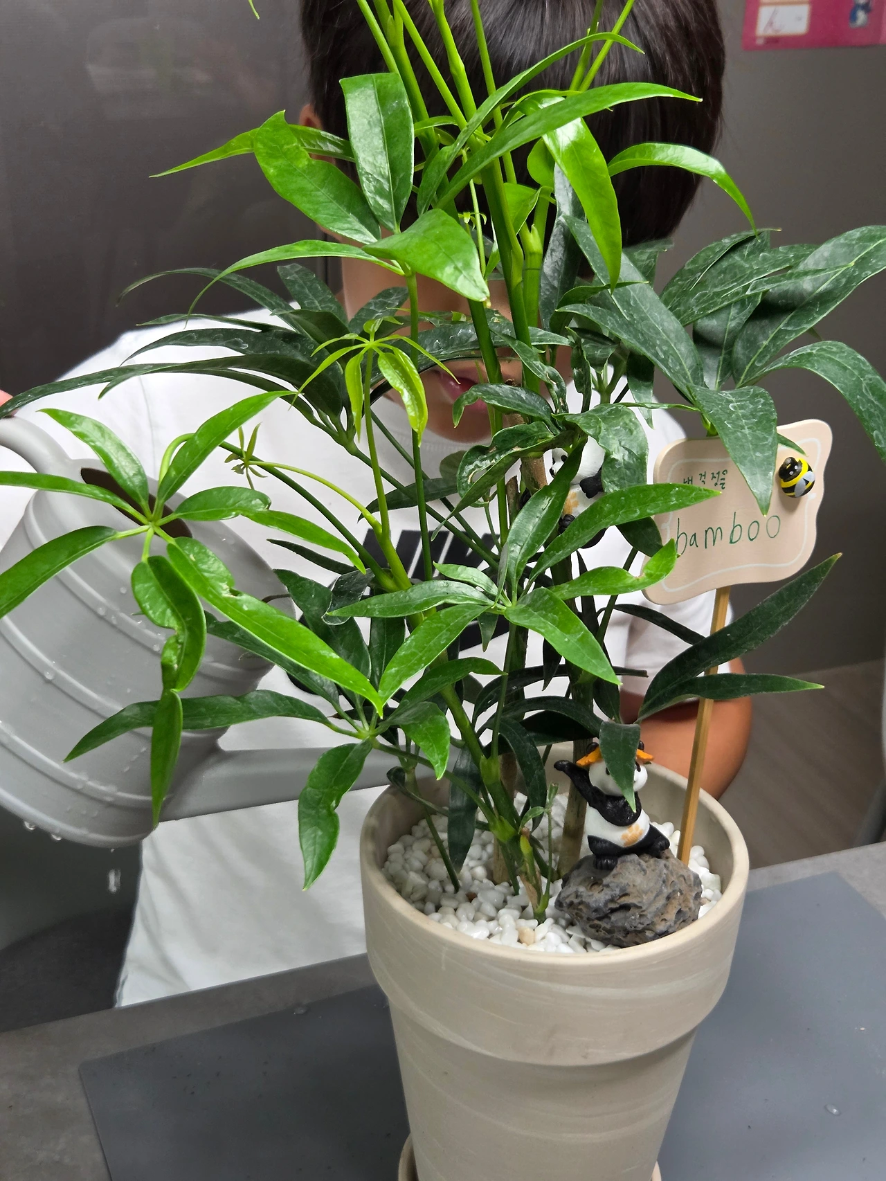 식물, 화분 (‘대나무홍콩야자’ 라는 이름에 흥미를 갖고 서준이가 직접 고른 식물이에요.)