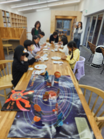 태양계 팔찌 만들기 활동에서는 아이들이 신중하게 낚싯줄에 태양계 구슬을 하나씩 꿰며 집중하는 모습을 보여줬다. 한 번이라도 집중을 흐트러뜨리면, 구슬의 순서를 잘못 끼울 수 있기 때문에, 그 시간이 정말 고요하고도 집중력이 넘쳤다.