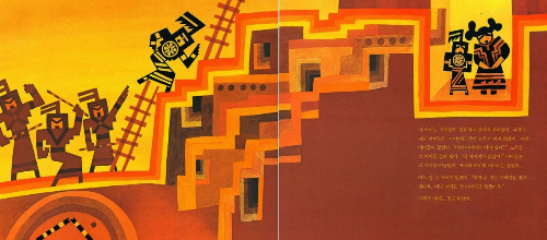 뉴멕시코의 푸에블로 인디언 설화를 소재로 하고 있지만 그림은 생경하다고 느껴질 만큼 현대적이고 독특하다. 풍부한 상징과, 치밀한 구도가 눈에 띈다. 화풍이 워낙 독특한 데다가 상징이 풍부하여 좀 어렵게 느껴지지만 그림책의 또 다른 세계를 열어 보인 기념비적인 작품이다. 출처 : 예스24