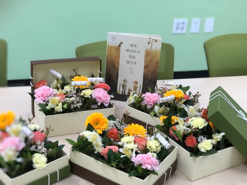 시간이 지나면서, 작은 아이디어는 결국 현실이 되었다. 지원사업에 선정된 우리는 본격적으로 활동을 시작하게 되었고, 예전처럼 단순히 만나 수다를 떨고 헤어지는 것이 아니라, 함께 목표를 세우고 무언가를 만들어가는 경험을 하게 되었다. 모여서 그림책을 읽고, 원예활동을 하며 서로의 생각을 나눴다. 그림책 속 이야기들은 점차 우리의 경험과 맞닿아 하나의 이야기가 되었고, 꽃바구니 만들기, 테라리움 만들기, 반려식물 만들기 등 다양한 원예활동을 함께하며 관계도 서서히 깊어졌다.