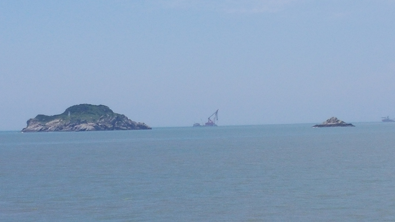 관매도를 마지막으로 정박한 배는 동거차도로 향했고. 곧 제 시야엔 인양을 하고 있는 상하이샐비지의 크레인이 보였습니다.