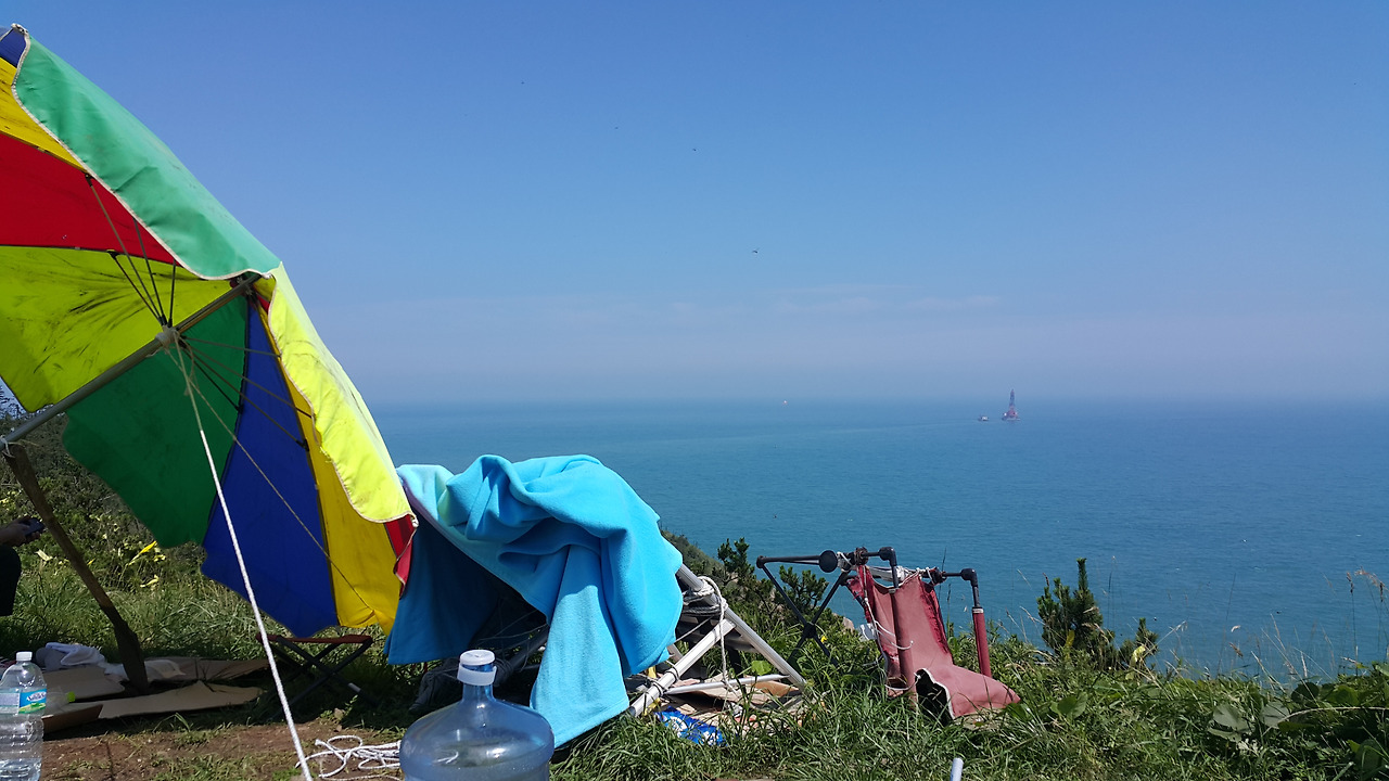 햇볕은 따갑게 내리 쬐었고. 동거차도의 꼭대기이 그늘이라곤. 가족분들이 직접 가지고 오신 파라솔이 전부였습니다.