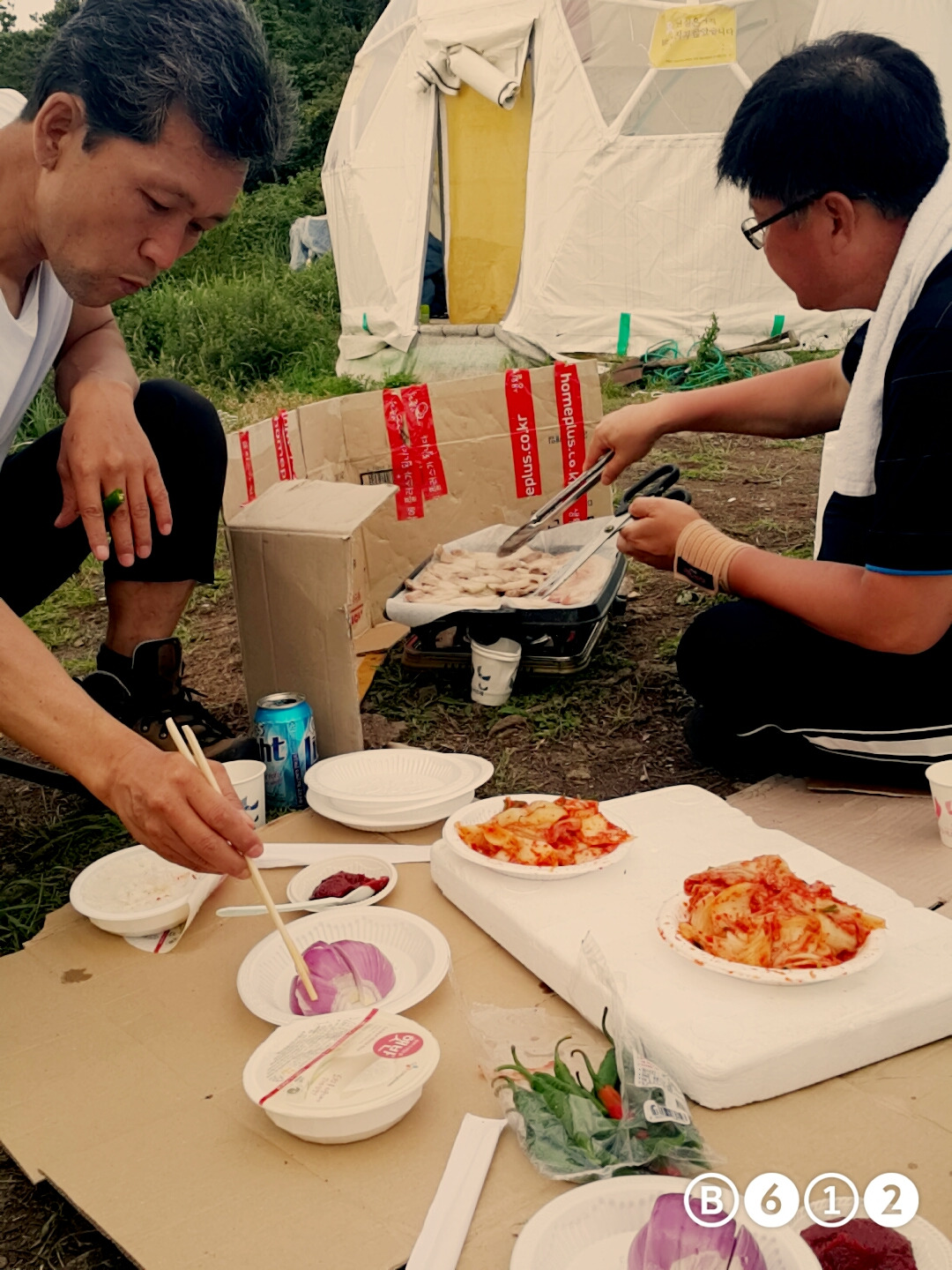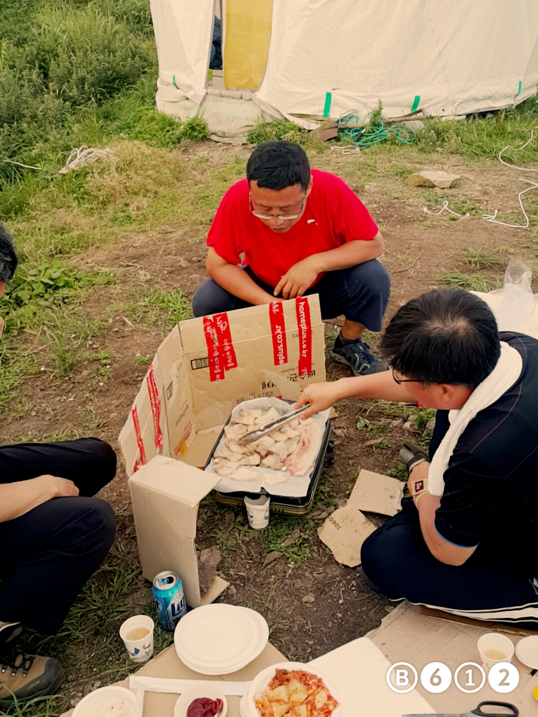 저녁으론 아버지들이 사오신 고기를 구워먹으며 소주도 함께 마셨습니다.