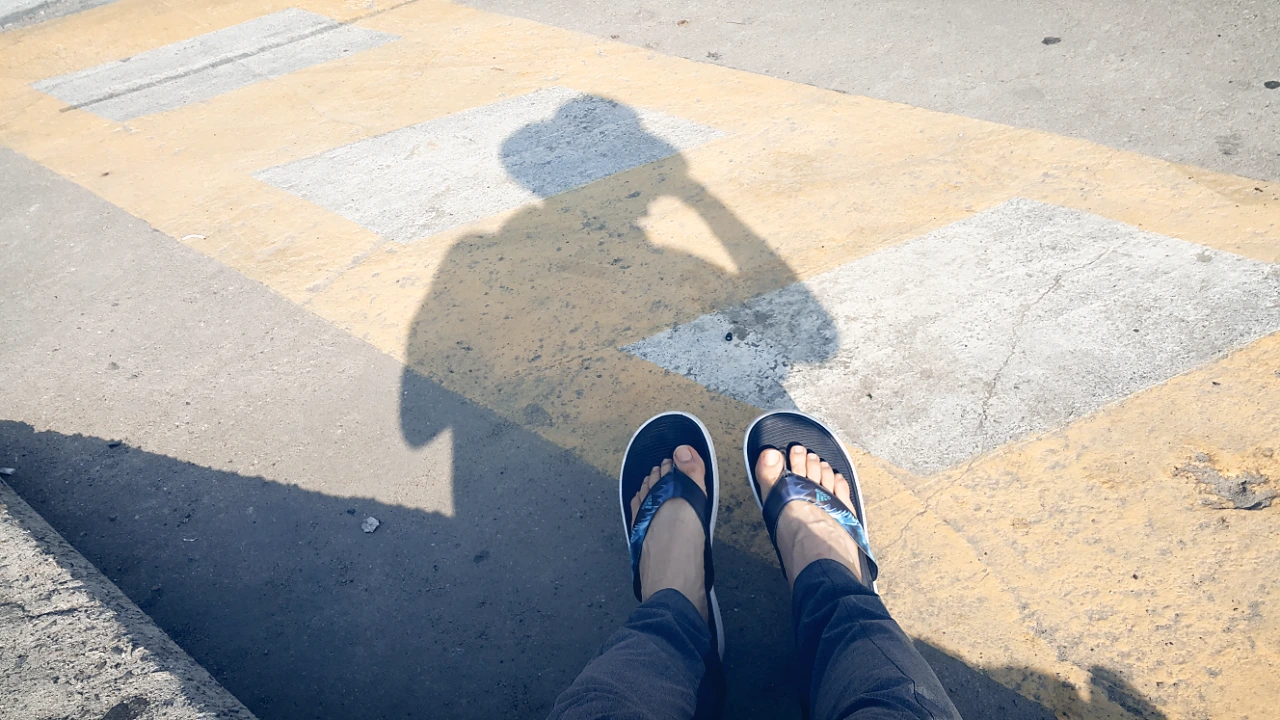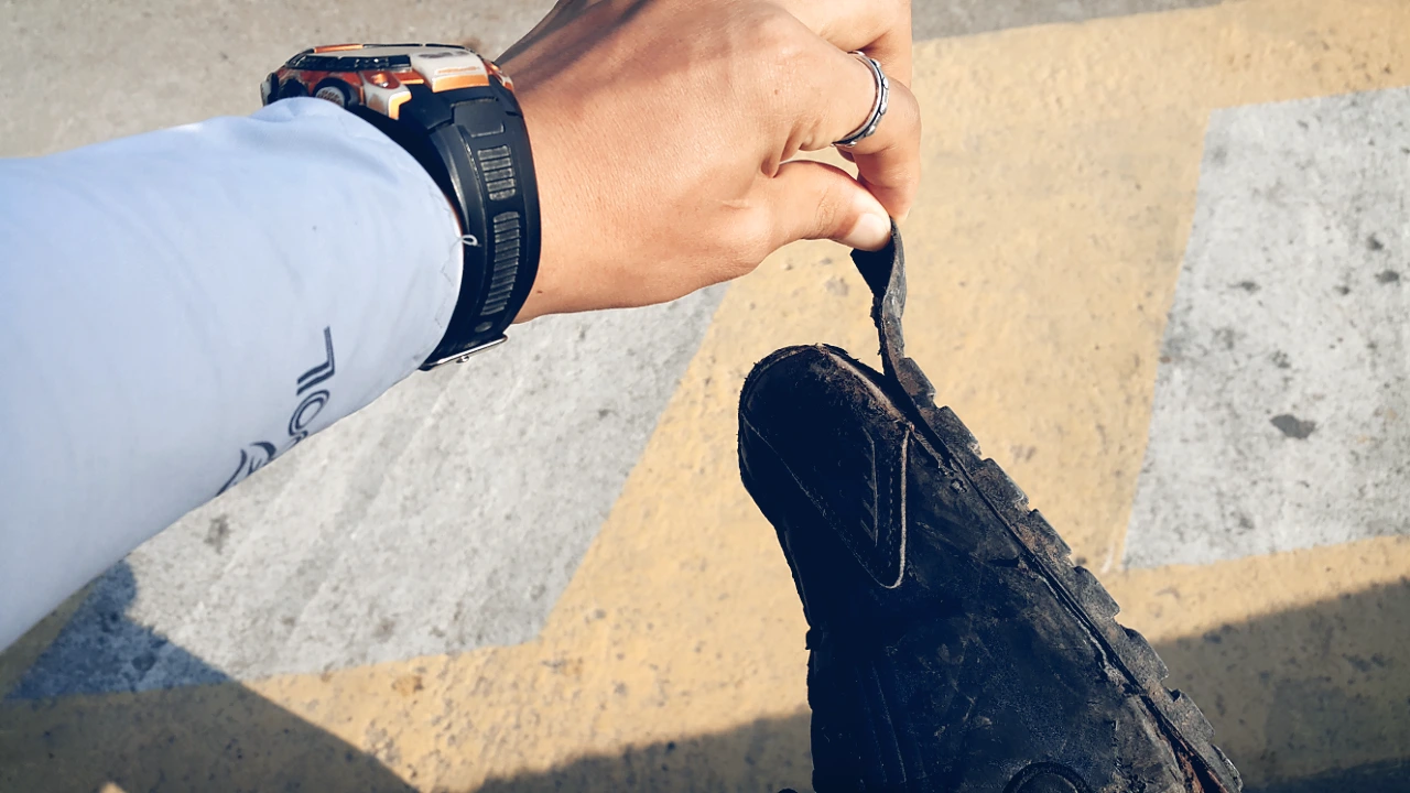동거차도 숲속을 헤매며 밑창이 다 찢어진 신발을 발견하곤 쿨하게 쓰레기통으로 직행.