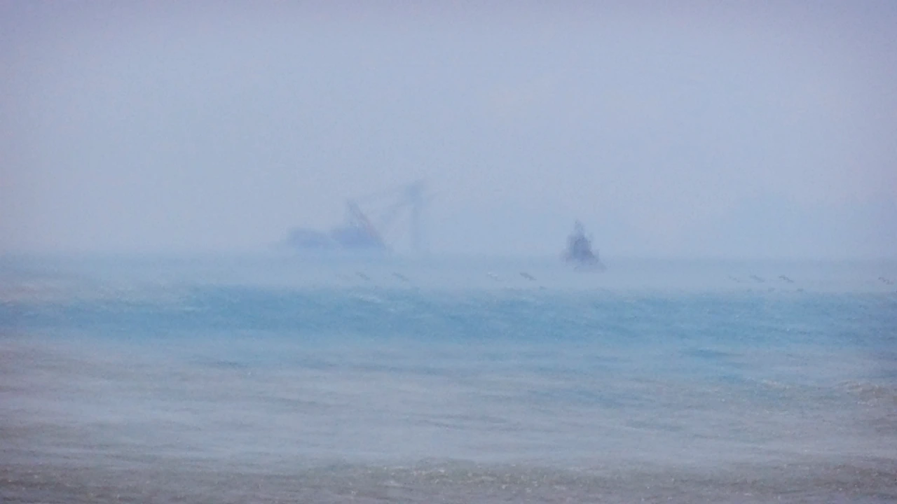 항구를 빠져나가자 다시 바지선이 보였습니다.