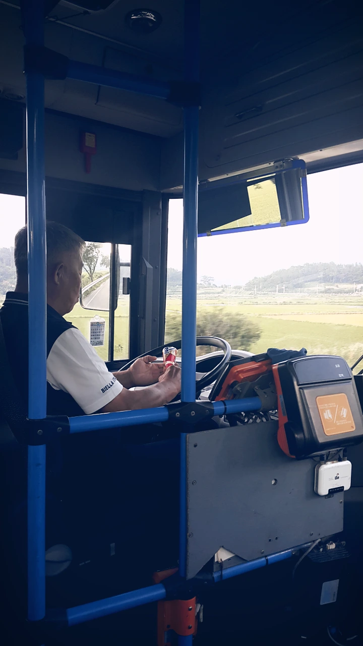 버스에 타니 시원하게 불어오는 에어컨 바람에 하~ 하고 숨을 고르고 가방을 풀며 요금을 물어보니.