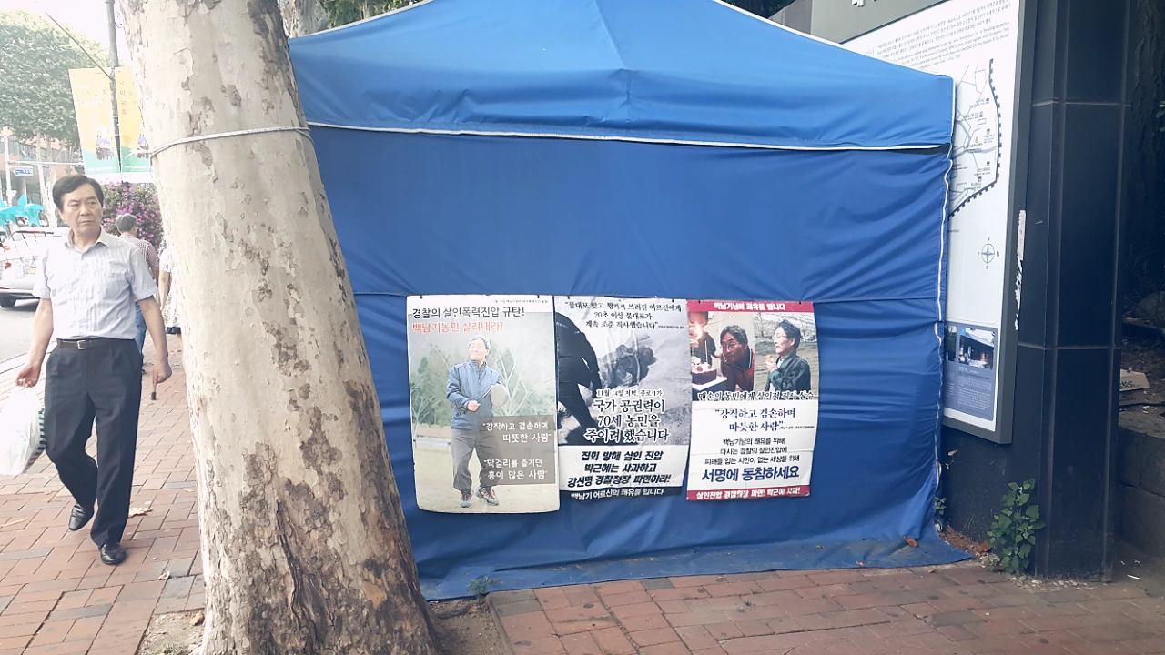 그곳엔 백남기 농민의 회복과 민주주의 회복을 바라며 농성을 이어가는 천막이 있습니다.