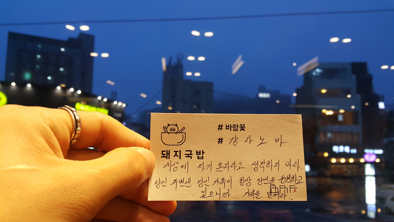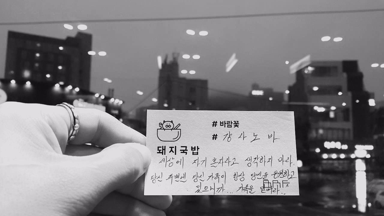"세상에 자기 혼자라고 생각하지 마라. 당신 주변엔 당신 가족이 항상 당신을 응원하고 있으니까.."