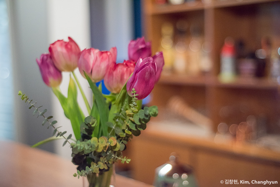 바에...생화라니...얼마나 근사한가...밤에 보는 생화라.